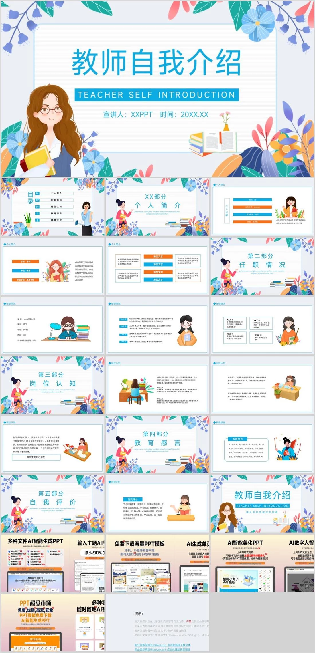 教师自我介绍TEACHER SELF INTRODUCTION宣讲人:XXPPT 时间:20XX.XX老师介绍,884,