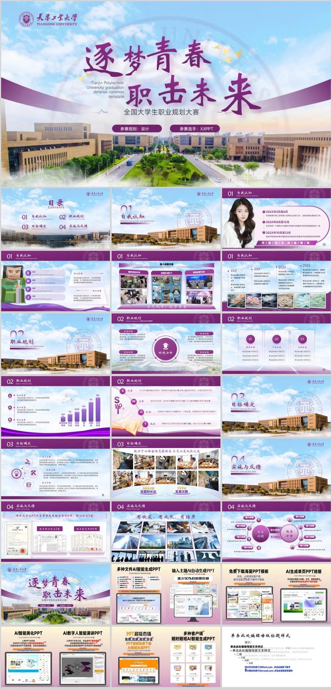 Tianjin Polytechnic University graduation defense common template全国大学生职业规划大赛参赛组别:设计参赛选手:XXPPT博学笃行创新致远逐梦青春职击未来职业规划,2125,