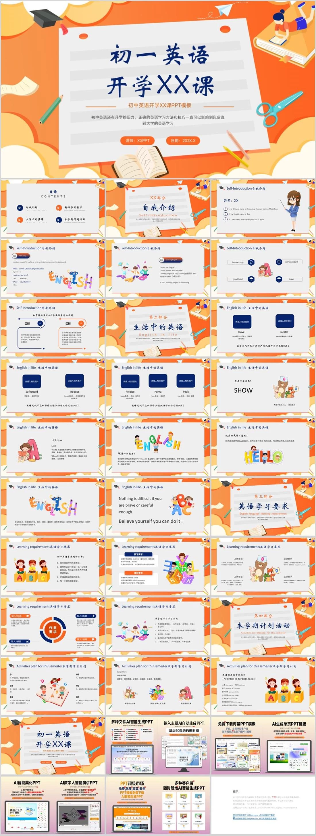 初一英语开学XX课初中英语开学XX课PPT模板初中英语还有升学的压力,正确的英语学习方法和技巧一直可以影响到以后直到大学的英语学习讲师:XXPPT日期:202X.X英语开学,1438,