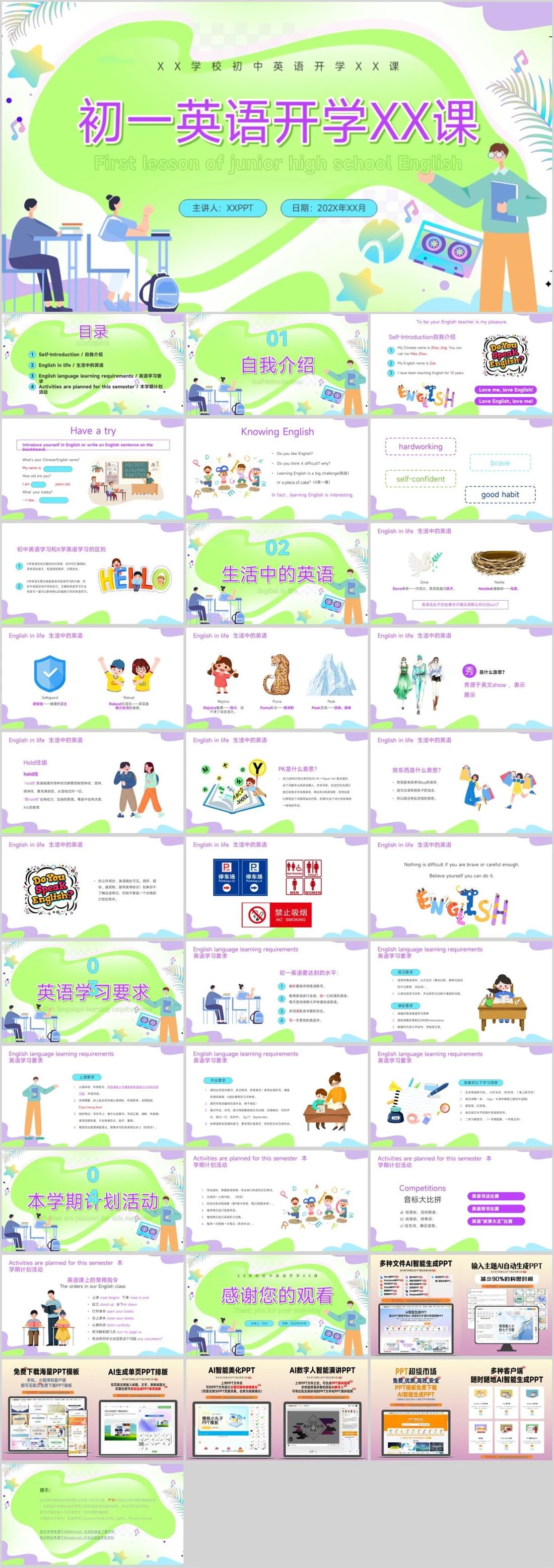 初一英语开学XX课初一英语开学XX课First lesson of junior high school English主讲人:XXPPT日期:202X年XX月XX学校初中英语开学XX课英语开学,1439,