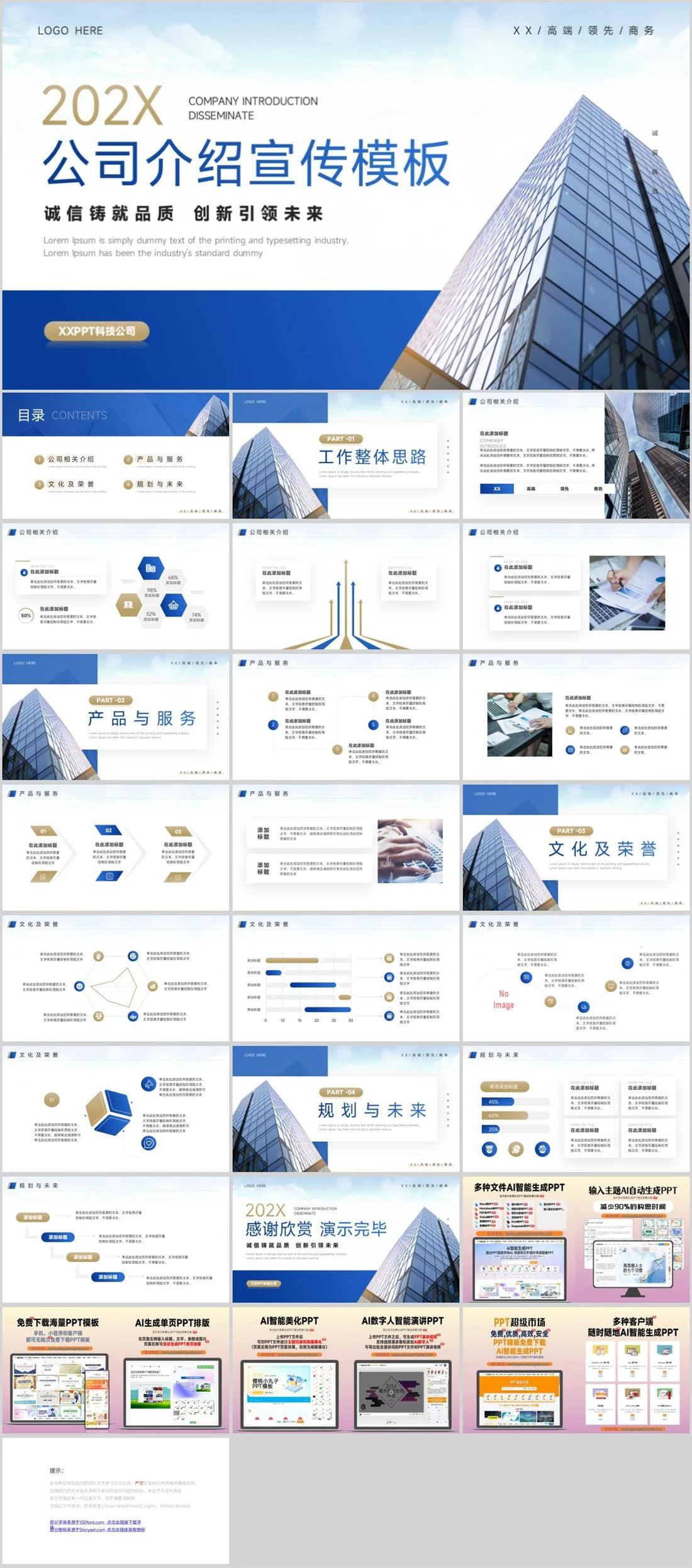 诚信铸就品质XX/高端/领先/商务LOGO HERE202XCOMPANY INTRODUCTIONDISSEMINATE公司介绍宣传模板诚信铸就品质 创新引领未来Lorem Ipsum is simply dummy text of the printing and typesetting ind蓝色商务,813,