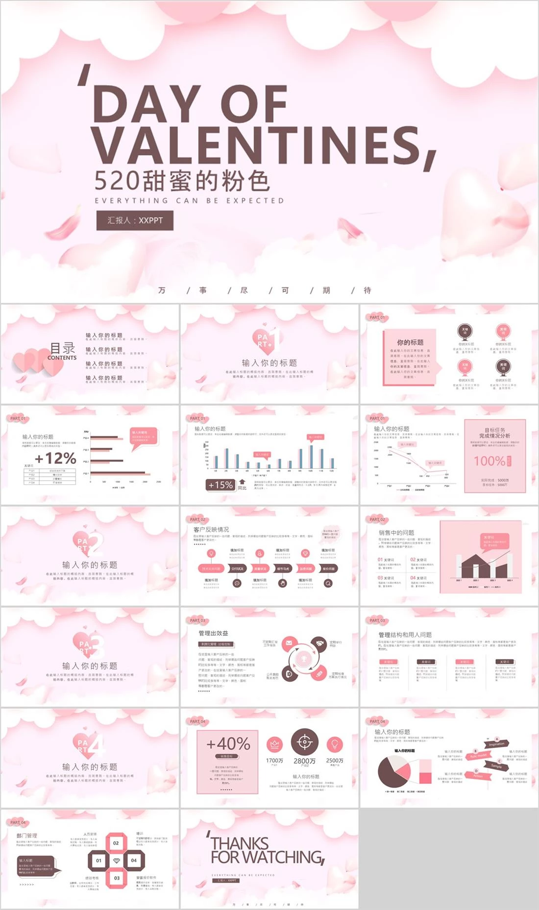DAY OF VALENTINES 汇报人:XXPPT 520甜蜜的粉色万/事/尽/可/期/待EVERYTHING CAN BE EXPECTED‘’164131528,情人节,7248,