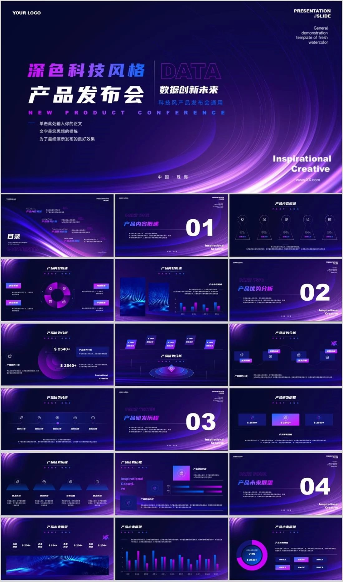 中国·珠海www.XX.comYOUR LOGOPRESENTATION//SLIDEGeneral demonstration template of fresh watercolorCreative深色科技风格产品发布会科技风产品发布会通用NEW PRODUCT CONFERENCE数据创新未来DA产品发布,7,