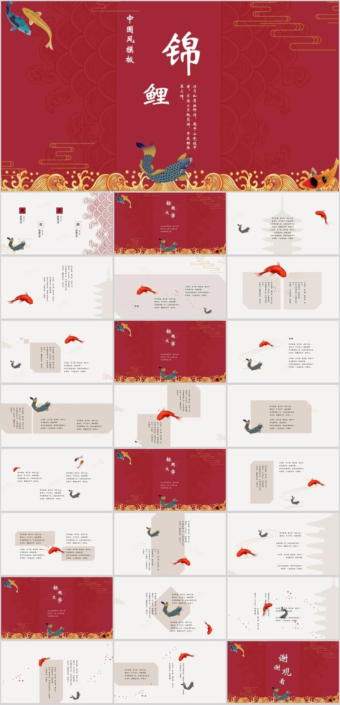 中国风模板锦鲤凉月如眉挂柳湾,越中山色镜中看。兰溪三月桃花雨,半夜鲤鱼来上滩。中国风,2149,