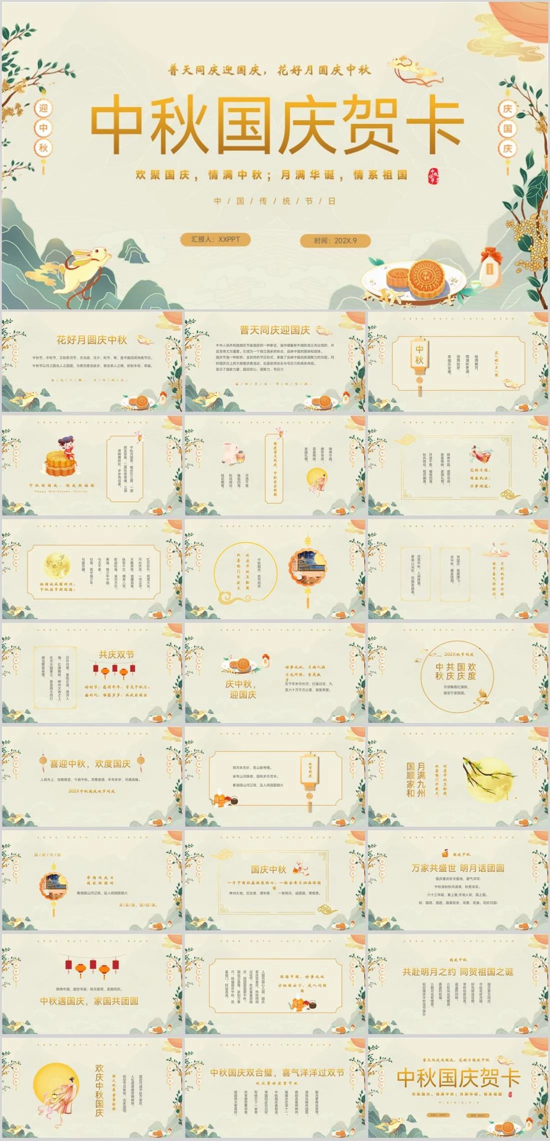 中秋国庆贺卡欢聚国庆,情满中秋;月满华诞,情系祖国普天同庆迎国庆,花好月圆庆中秋中/国/传/统/节/日 汇报人:XXPPT时间:202X.9中秋国庆,1459,