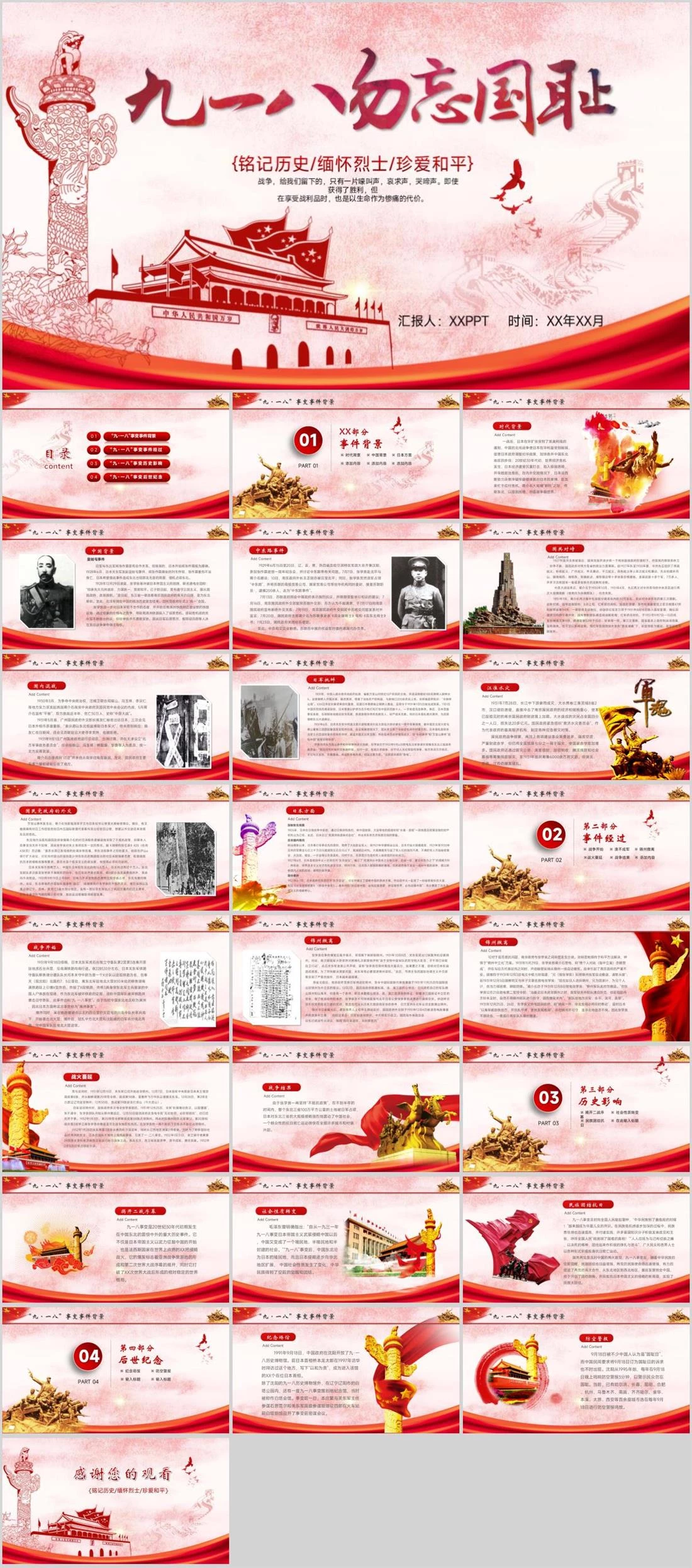 {铭记历史/缅怀烈士/珍爱和平} 战争,给我们留下的,只有一片嚎叫声,哀求声,哭啼声。即使获得了胜利,但在享受战利品时,也是以生命作为惨痛的代价。汇报人:XXPPT 时间:XX年XX月九一八事变,1572,