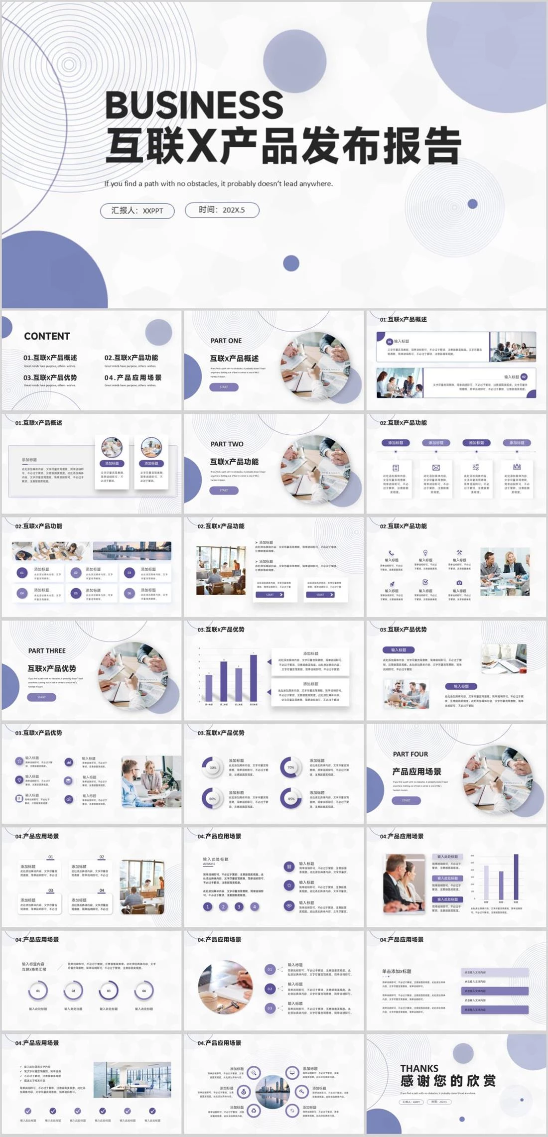 BUSINESS互联X产品发布报告If you find a path with no obstacles, it probably doesn’t lead anywhere. 汇报人:XXPPT时间:202X.5互联网产品介绍,