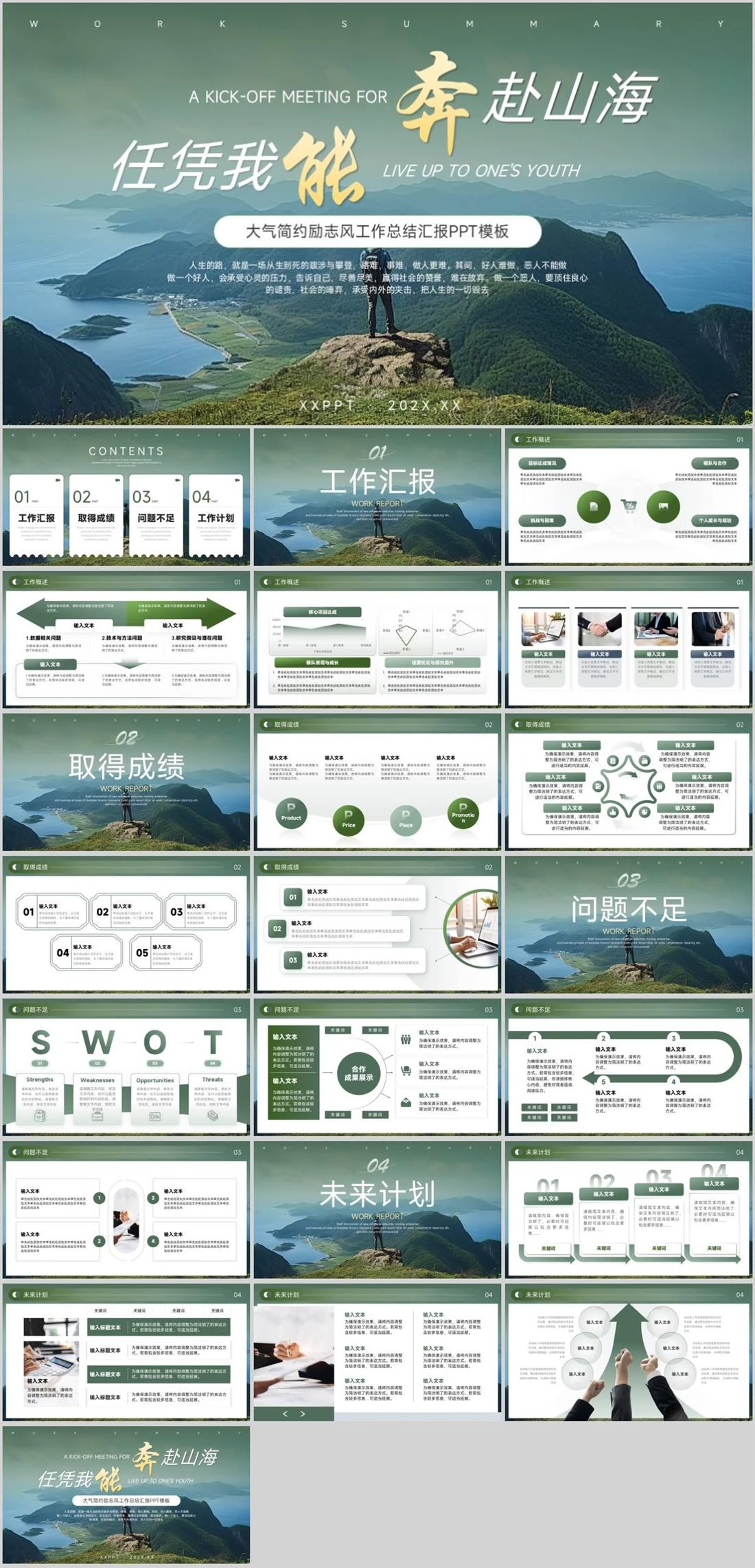 大气简约励志风工作总结汇报PPT模板人生的路,就是一场从生到死的跋涉与攀登,路难,事难,做人更难。其间,好人难做,恶人不能做做一个好人,会承受心灵的压力,告诉自己,尽善尽美,赢得社会的赞誉,难在放弃。做一个恶人,要顶住良心的谴责,社会的唾弃,承受内外的夹击,把人生的一切毁去 WORK SUMMAR商务汇报,1392,