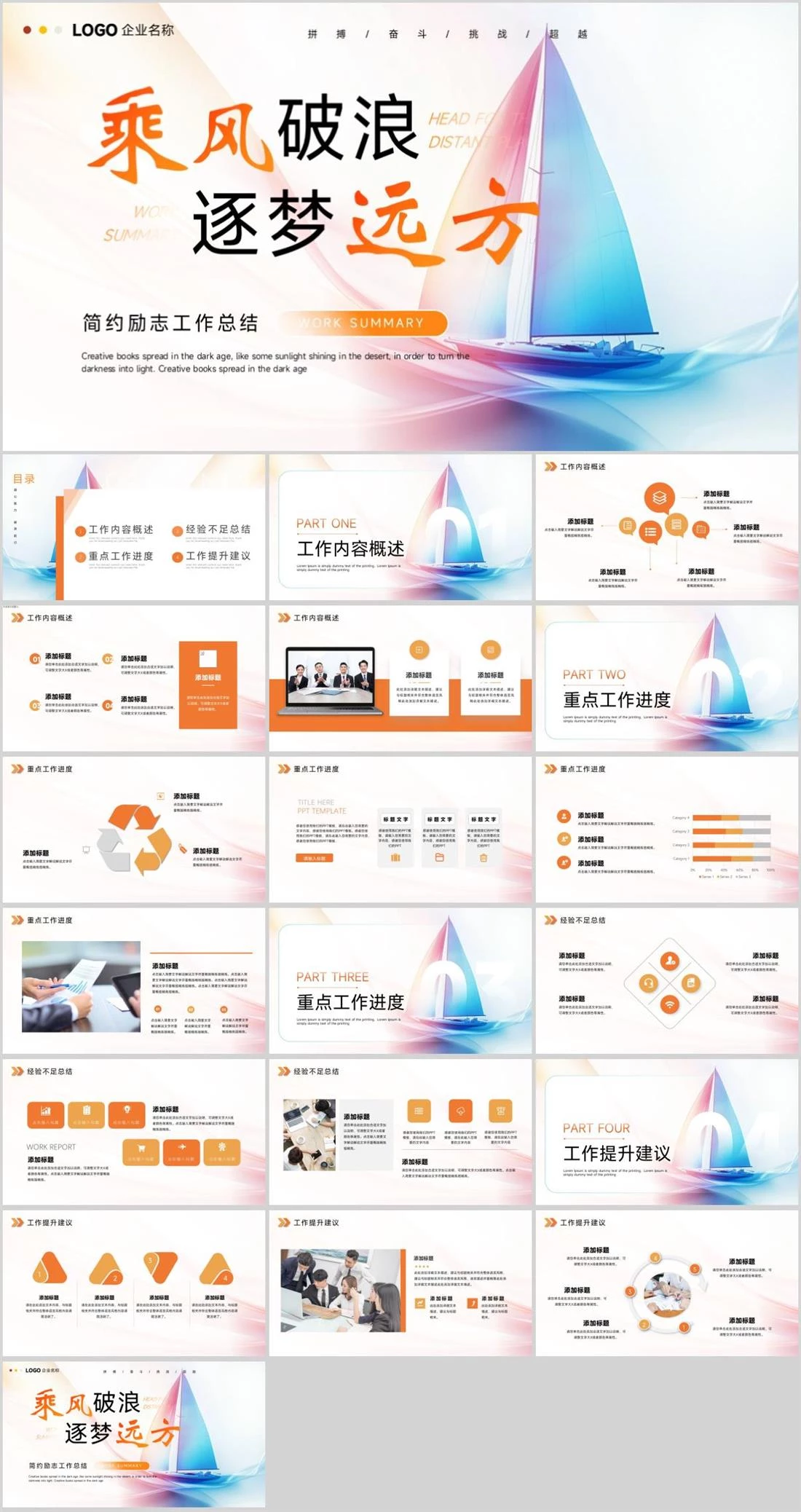 逐梦远方乘风破浪 WORK SUMMARYHEAD FOR THE DISTANT PLACE简约励志工作总结Creative books spread in the dark age, like some sunlight shining in the desert, in order to 商务汇报,1413,