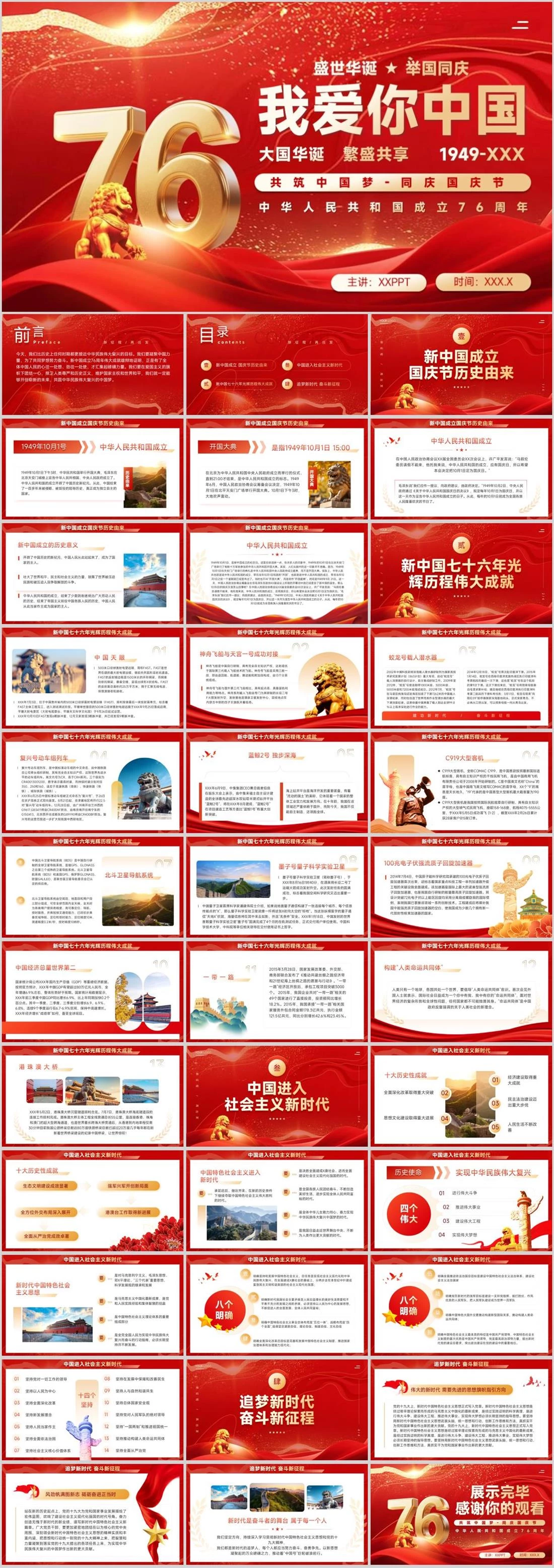 大国华诞 繁盛共享1949-XXX我爱你中国盛世华诞 ★ 举国同庆共筑中国梦-同庆国庆节中华人民共和国成立76周年主讲:XXPPT时间:XXX.X国庆节,352,