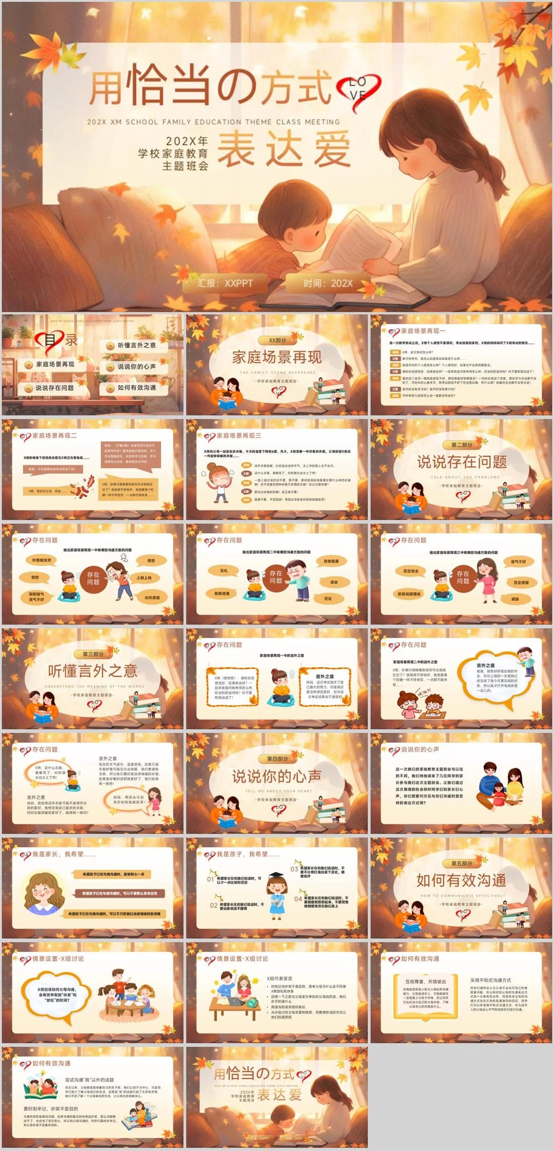 用恰当の方式表达爱202X年学校家庭教育主题班会202X XM SCHOOL FAMILY EDUCATION THEME CLASS MEETINGLOVE汇报:XXPPT时间:202X家庭教育讲座,737,