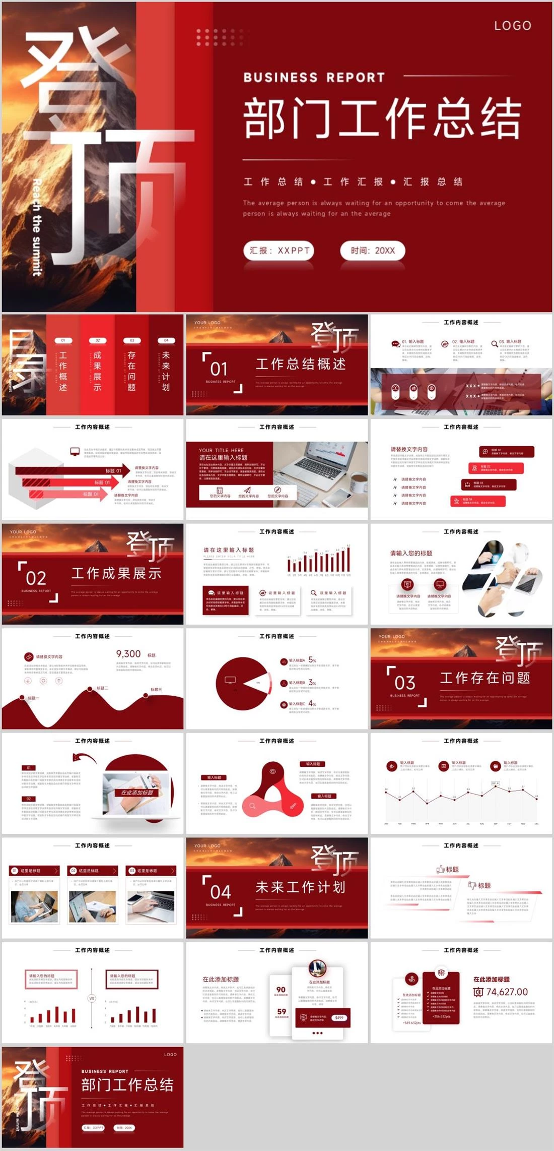 登顶Reach the summit部门工作总结BUSINESS REPORT工作总结工作汇报汇报总结The average person is always waiting for an opportunity to come the average person is always waiti工作总结,2313,