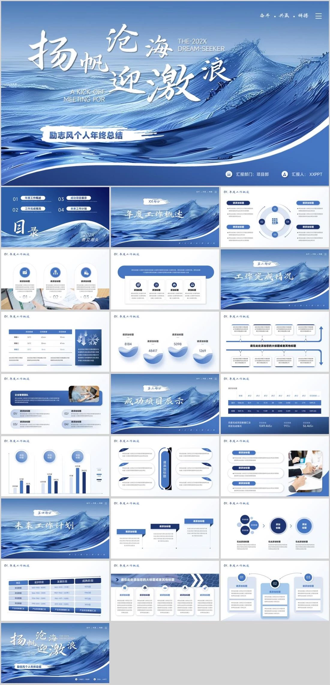 扬帆沧迎激海浪THE-202X DREAM-SEEKERA KICK-OFFMEETING FOR励志风个人年终总结汇报部门:项目部汇报人: XXPPT奋斗共赢拼搏工作总结,2326,