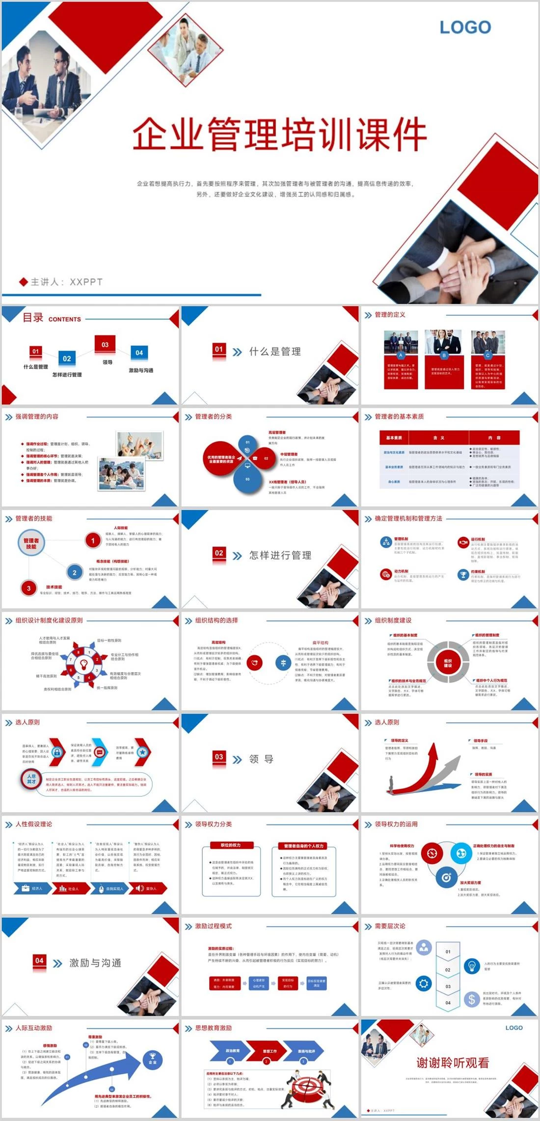 企业管理培训课件主讲人:XXPPT LOGO企业若想提高执行力,首先要按照程序来管理,其次加强管理者与被管理者的沟通,提高信息传递的效率,另外,还要做好企业文化建设,增强员工的认同感和归属感。 企业培训,374,