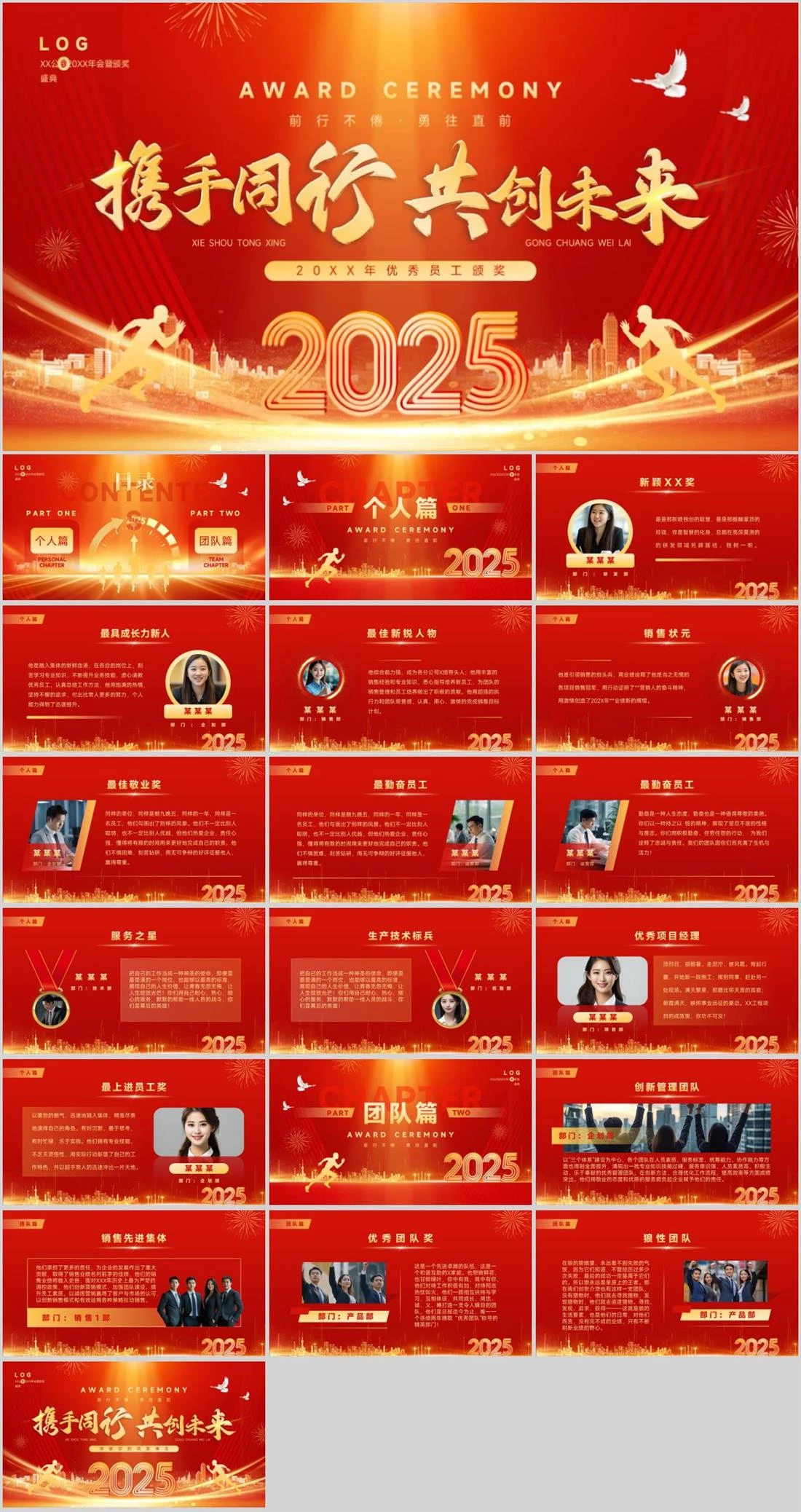 AWARD CEREMONY前行不倦·勇往直前20XX年优秀员工颁奖LOGO XX公司20XX年会暨颁奖盛典XIE SHOU TONG XING GONG CHUANG WEI LAI公司年会,2490,