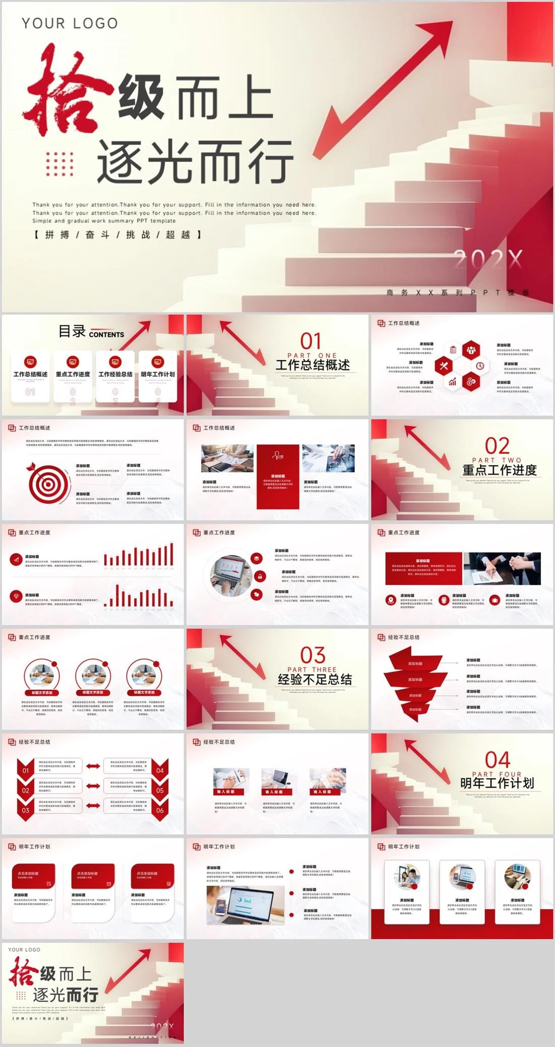 而上逐光YOUR LOGO级而行【拼搏/奋斗/挑战/超越】商务XX系列PPT模板Thank you for your attention.Thank you for your support. Fill in the information you need here. Thank you for励志商务风,864,