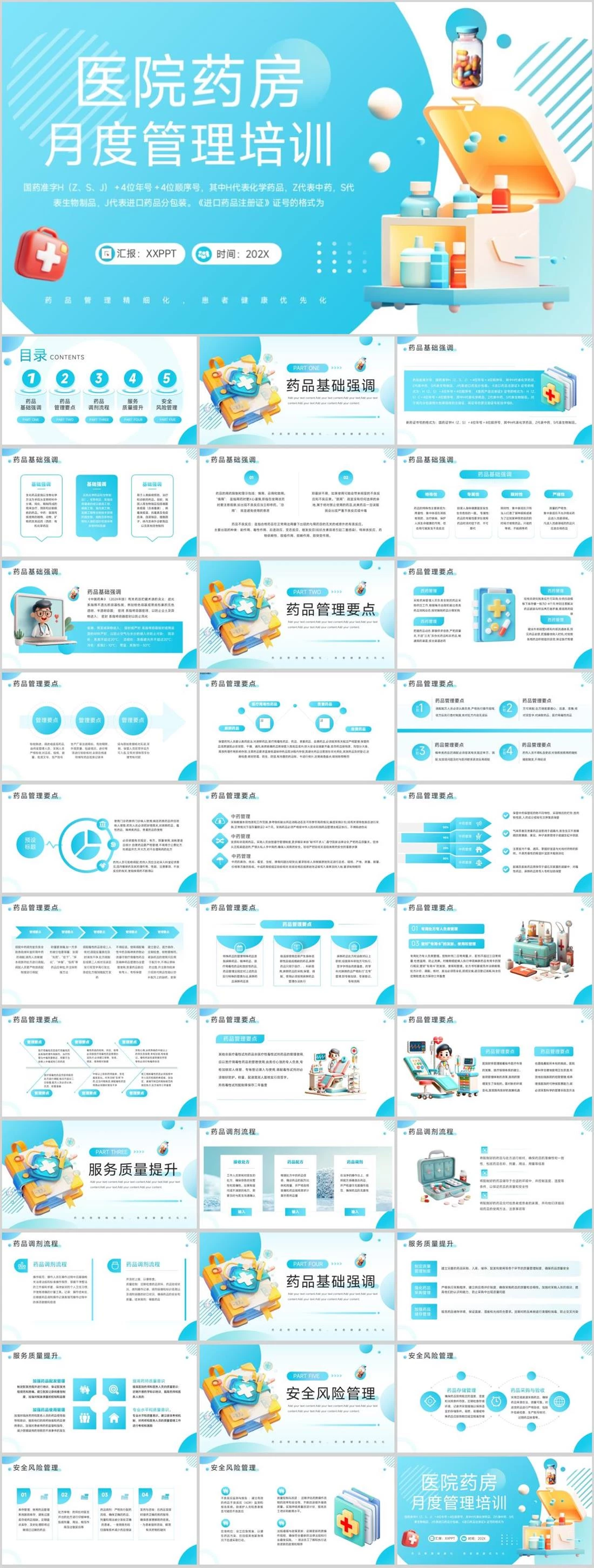 国药准字H(Z、S、J)+4位年号+4位顺序号,其中H代表化学药品,Z代表中药,S代表生物制品,J代表进口药品分包装。《进口药品注册证》证号的格式为月度管理培训汇报:XXPPT时间:202X医院药房药品管理精细化,患者健康优先化医疗护理,1713,