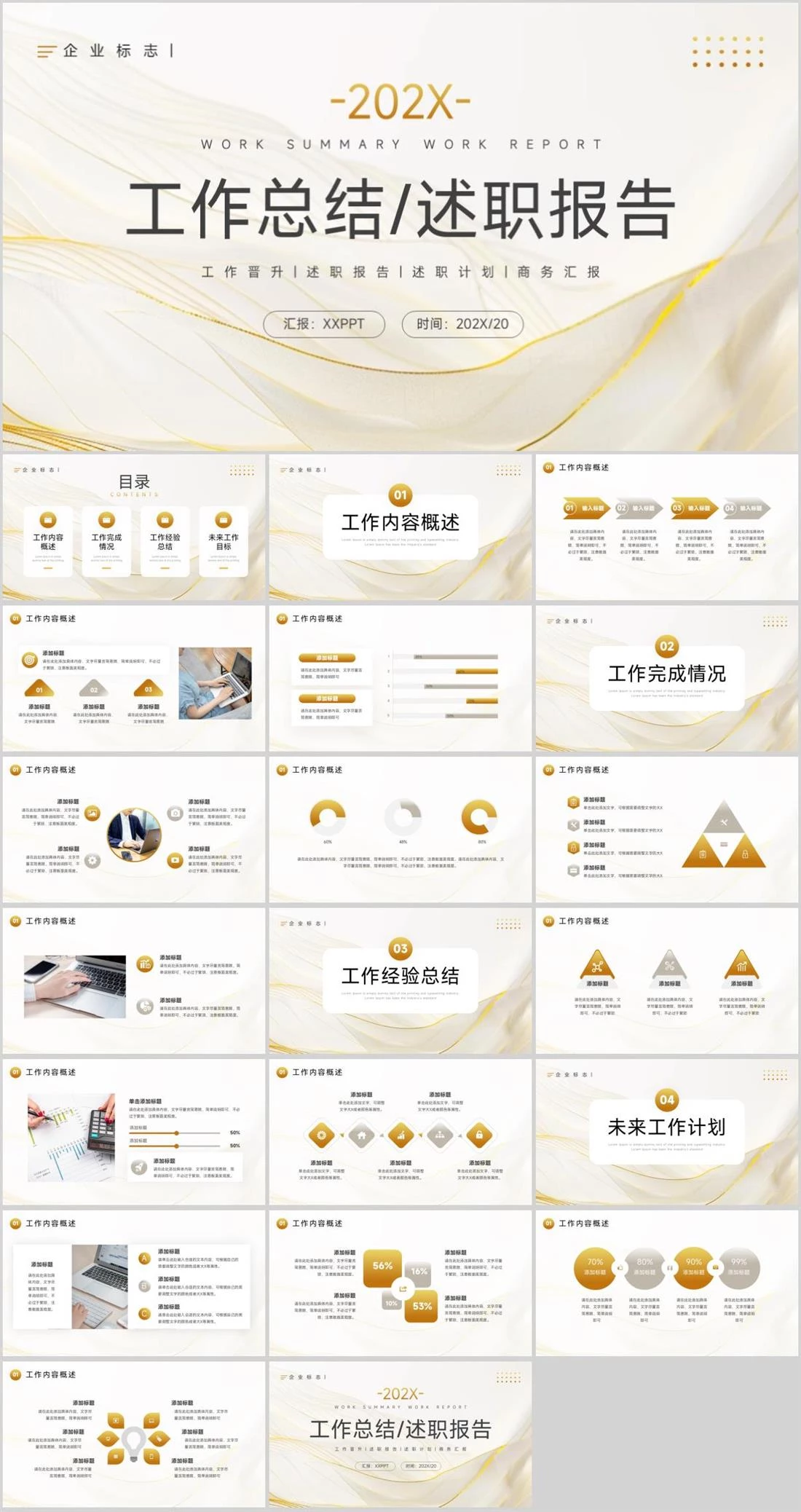 工作总结/述职报告-202X-工作晋升|述职报告|述职计划|商务汇报汇报:XXPPT时间:202X/20WORK SUMMARY WORK REPORT企业标志|商务汇报,1238,