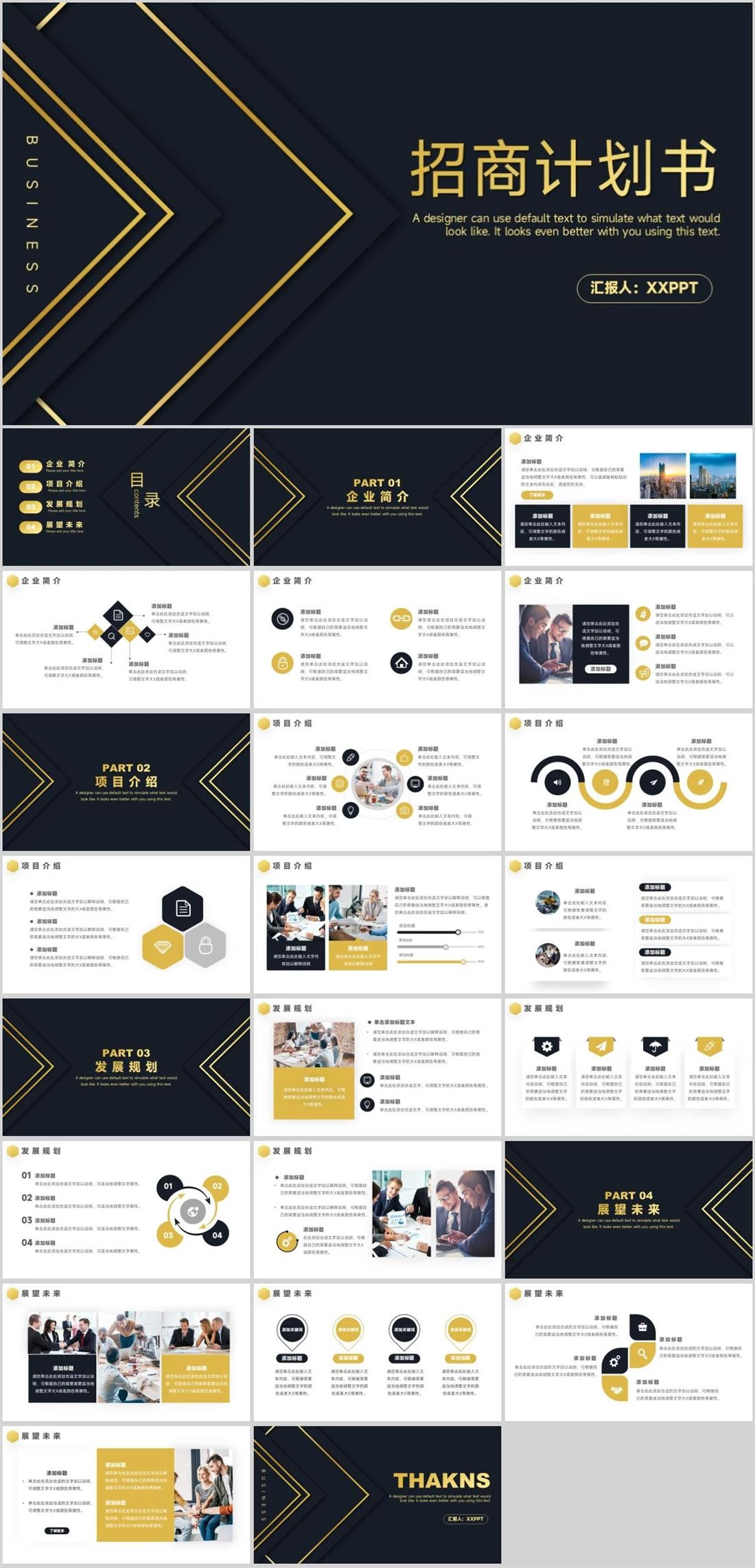 招商计划书A designer can use default text to simulate what text would look like. It looks even better with you using this text. 汇报人:XXPPTBUSINESS 招商计划书,