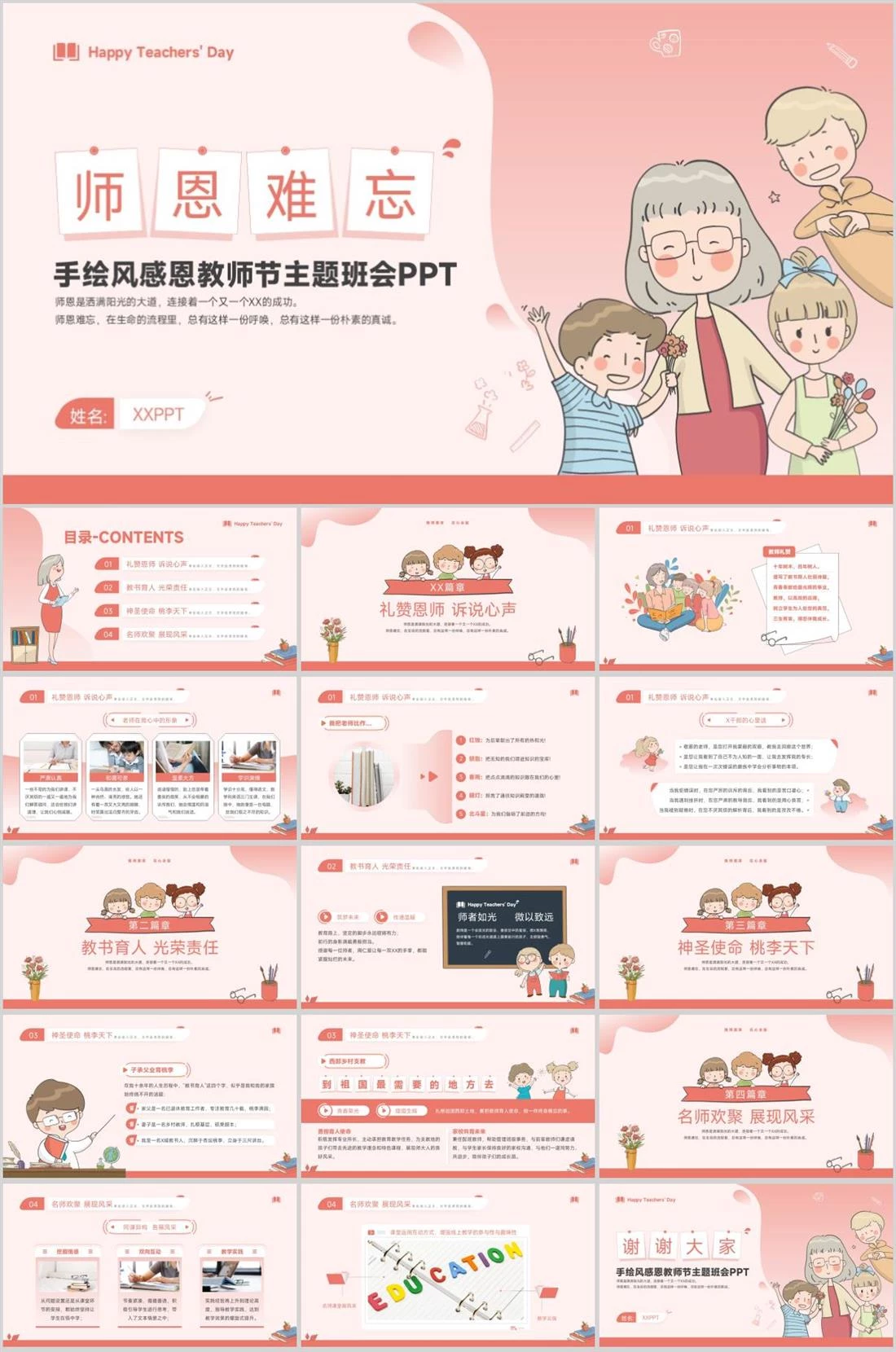 手绘风感恩教师节主题班会PPT师恩是洒满阳光的大道,连接着一个又一个XX的成功。师恩难忘,在生命的流程里,总有这样一份呼唤,总有这样一份朴素的真诚。师恩难忘XXPPT姓名:教师节,1590,