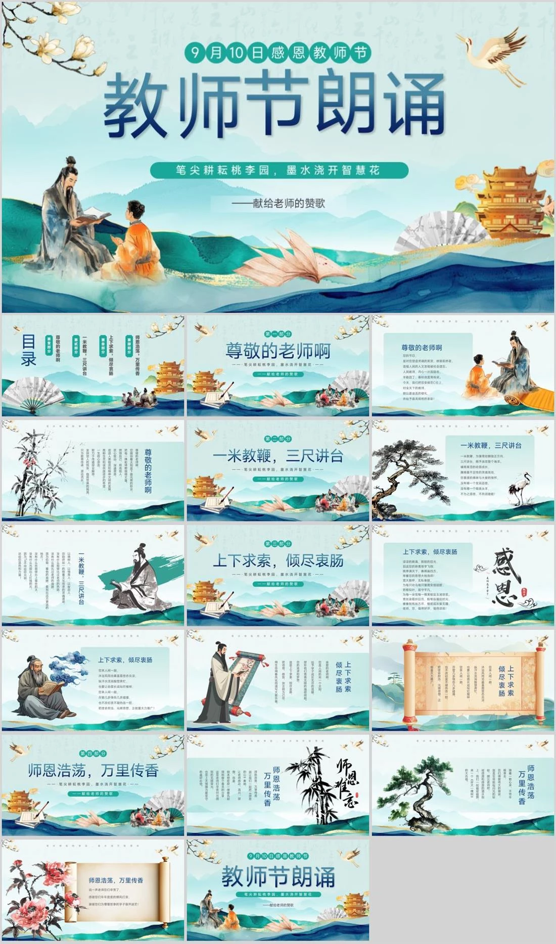 ——献给老师的赞歌笔尖耕耘桃李园,墨水浇开智慧花9月10日感恩教师节教师节朗诵教师节,1592,