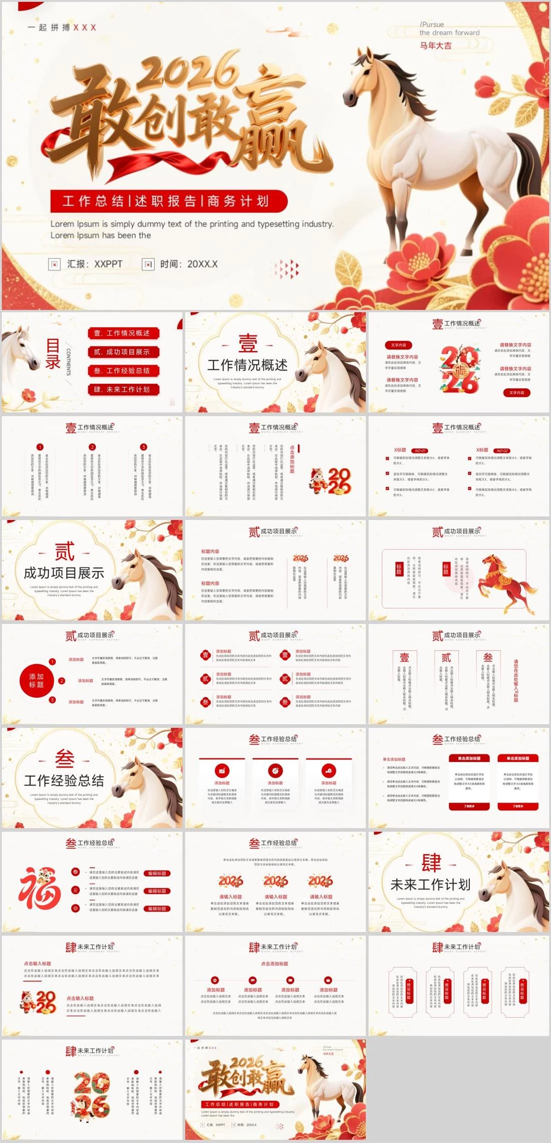 工作总结|述职报告|商务计划Lorem Ipsum is simply dummy text of the printing and typesetting industry. Lorem Ipsum has been the汇报:XXPPT时间:20XX.X一起拼搏XXX/Pursue the 新年主题,1957,