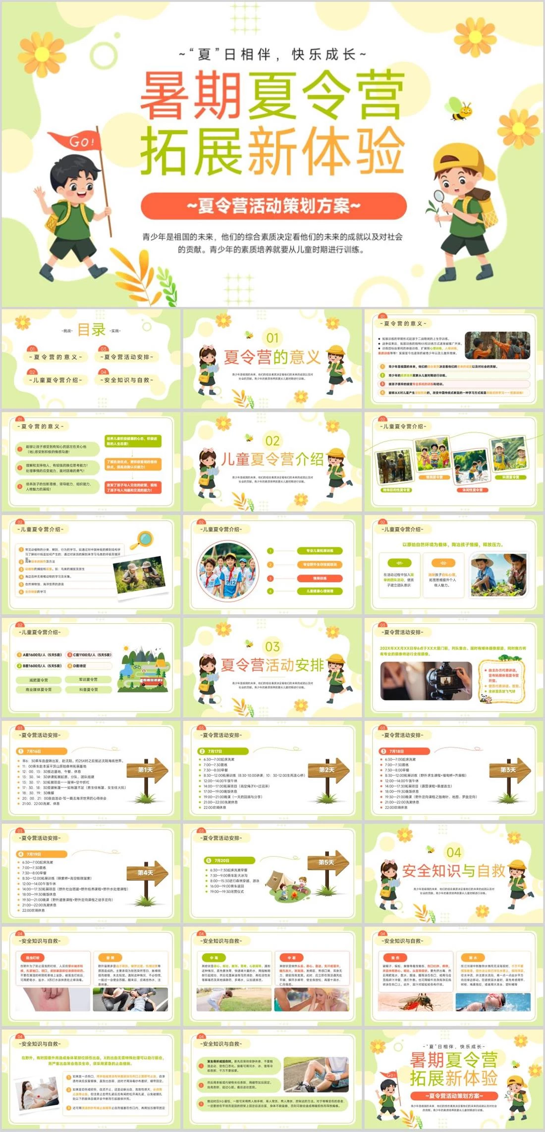 ~夏令营活动策划方案~青少年是祖国的未来,他们的综合素质决定看他们的未来的成就以及对社会的贡献。青少年的素质培养就要从儿童时期进行训练。~“夏”日相伴,快乐成长~暑期夏令营拓展新体验暑期夏令营,