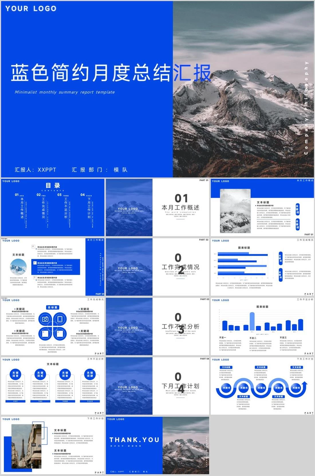 蓝色简约月度总结汇报Minimalist monthly summary report templateYOUR LOGO汇报人:XXPPT汇报部门:模队Company Philosophy极简商务,2338,