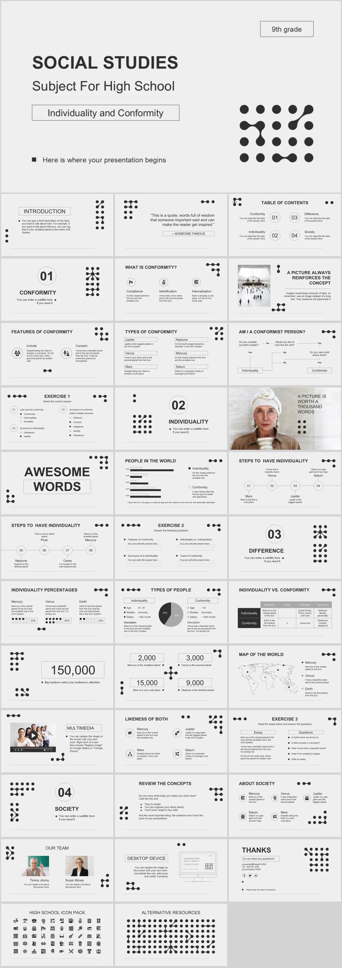 SOCIAL STUDIESHere is where your presentation beginsIndividuality and Conformity9th gradeSubject For High School极简商务,2347,