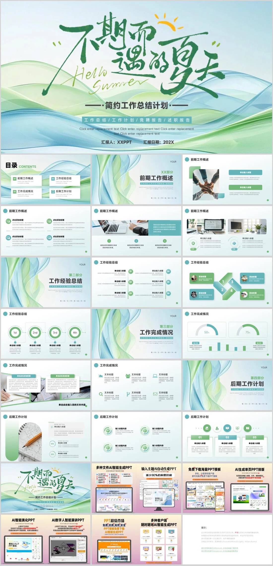 ——·简约工作总结计划·——汇报人:XXPPT汇报日期:202XClick enter replacement text Click enter replacement text Click enter replacement text Click enter replacement text工作总结简约商务,58,