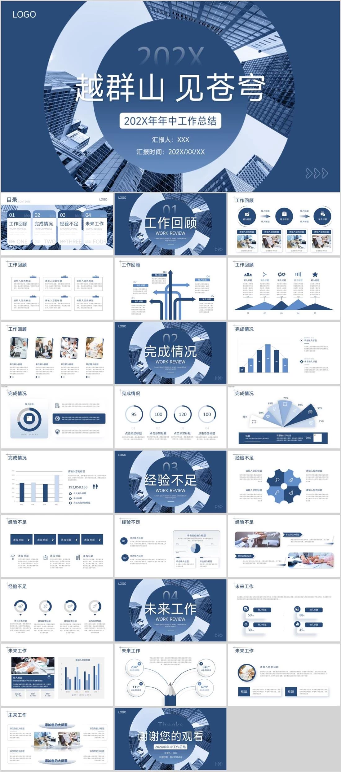 202X年年中工作总结汇报人:XXX汇报时间:202X/XX/XX越群山 见苍穹202XLOGO年中总结,