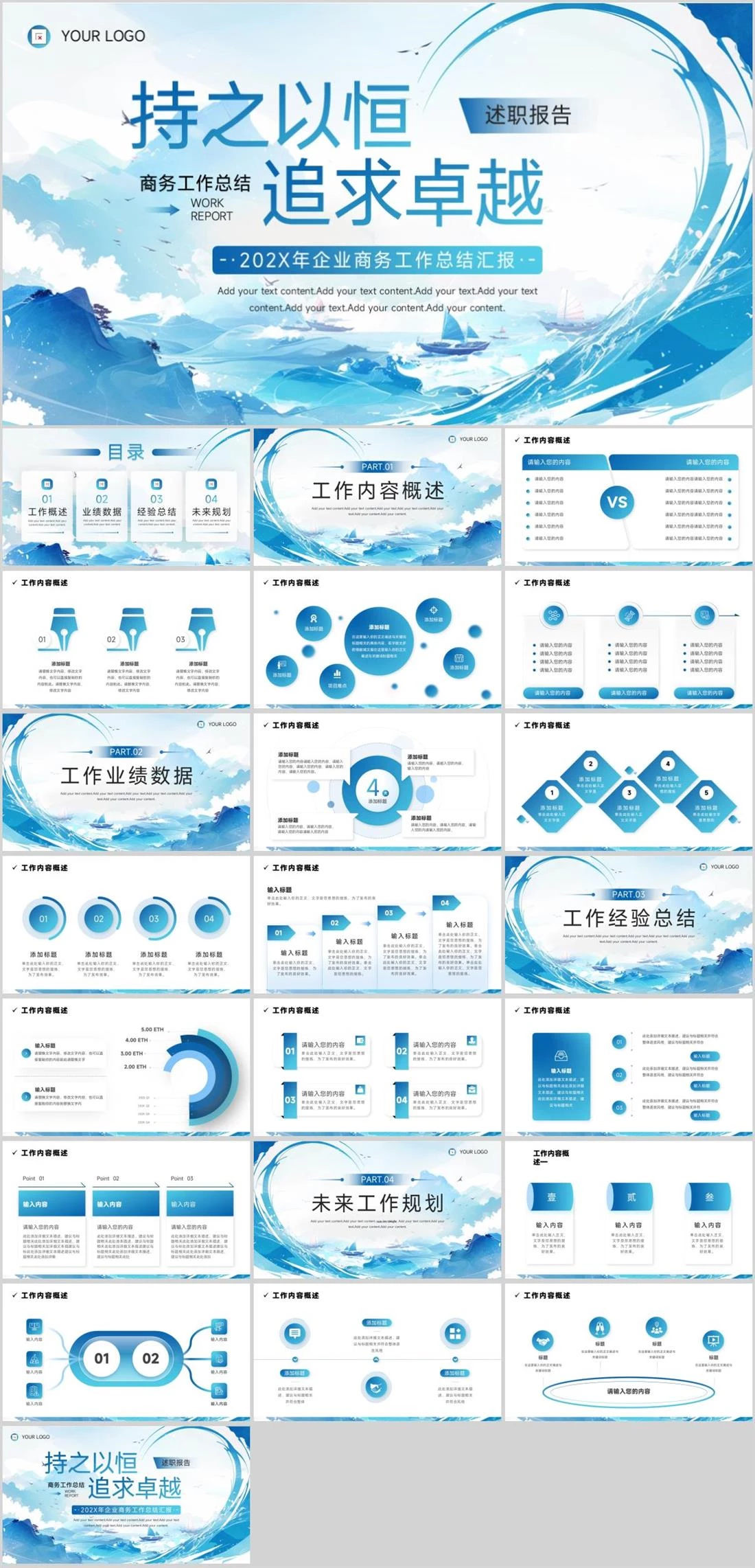 -·202X年企业商务工作总结汇报·-商务工作总结WORK REPORT述职报告YOUR LOGOAdd your text content.Add your text content.Add your text.Add your text content.Add your text.Add yo年终总结,1900,
