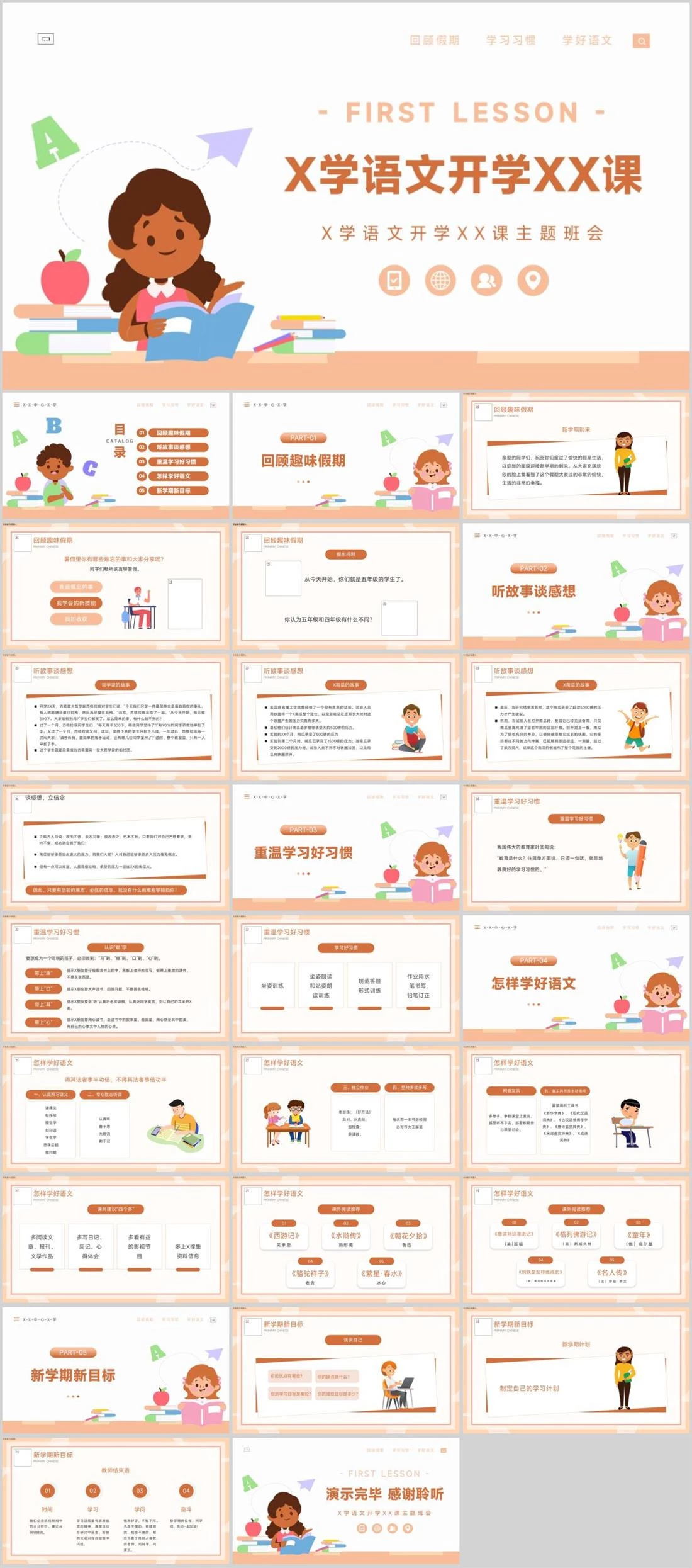 - FIRST LESSON -X学语文开学XX课X学语文开学XX课主题班会学习习惯学好语文回顾假期开学主题,757,