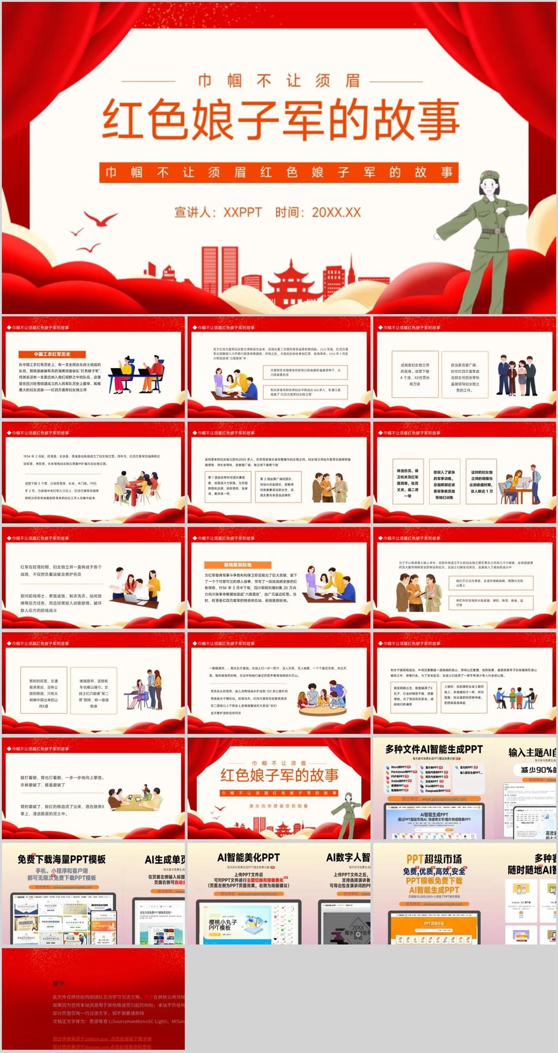 红色娘子军的故事巾帼不让须眉红色娘子军的故事宣讲人:XXPPT 时间:20XX.XX巾帼不让须眉红色英雄故事,
