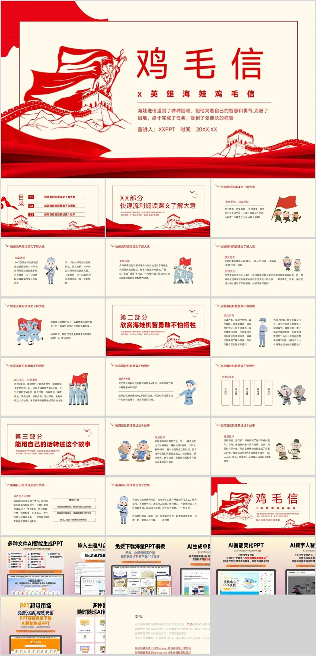 鸡 毛 信X英雄海娃鸡毛信海娃送信遇到了种种困难,但他凭着自己的智慧和勇气,克服了困难,终于完成了任务,受到了张连长的称赞宣讲人:XXPPT 时间:20XX.XX红色英雄故事,1504,