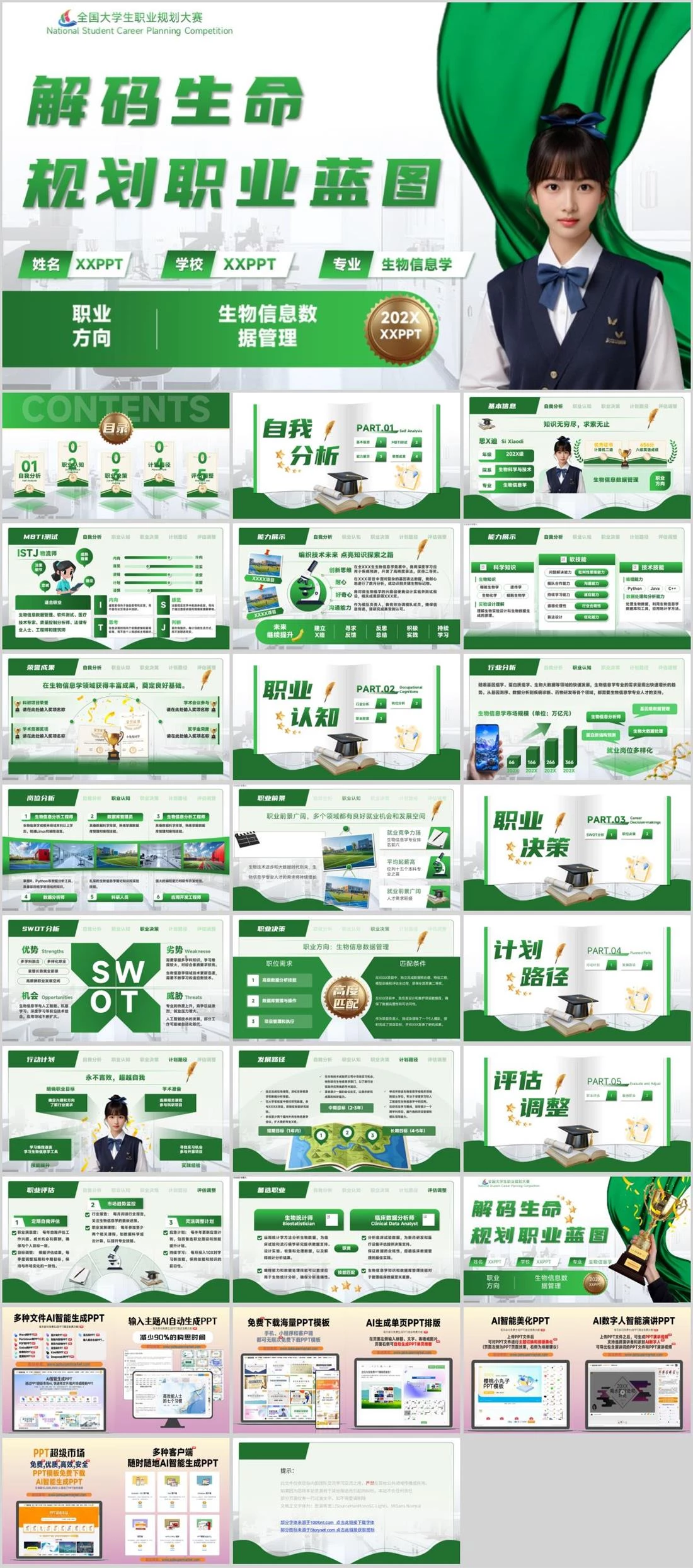 解全国大学生职业规划大赛National Student Career Planning Competition姓名 XXPPT学校 XXPPT专业 生物信息学码生命规划职业蓝图202XXXPPT生物信息数据管理职业方向职业规划,
