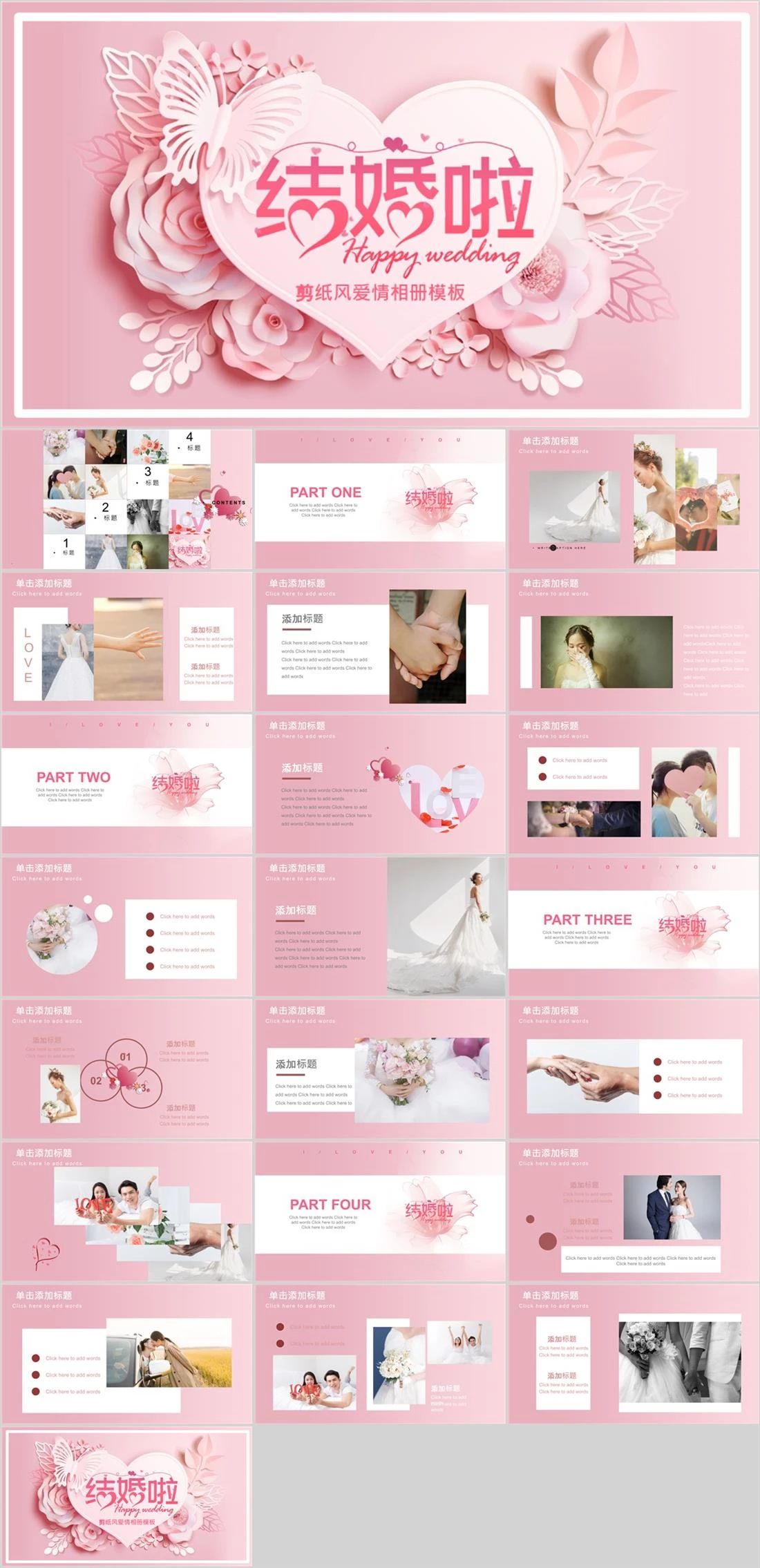 剪纸风爱情相册模板164131528,婚礼,9588,