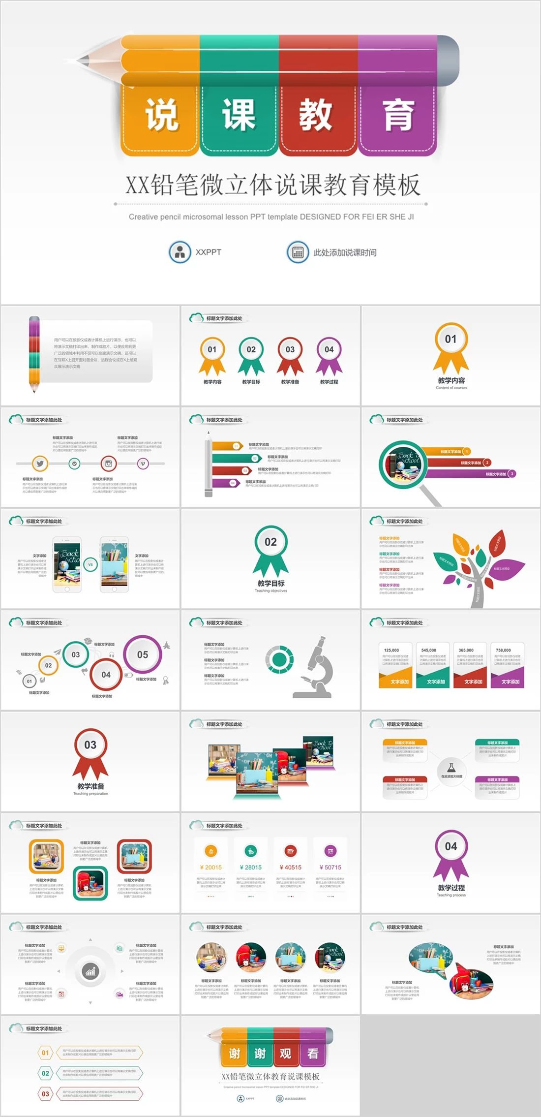说课教育XX铅笔微立体说课教育模板XXPPT此处添加说课时间Creative pencil microsomal lesson PPT template DESIGNED FOR FEI ER SHE JI164131528,教学说课,8616,