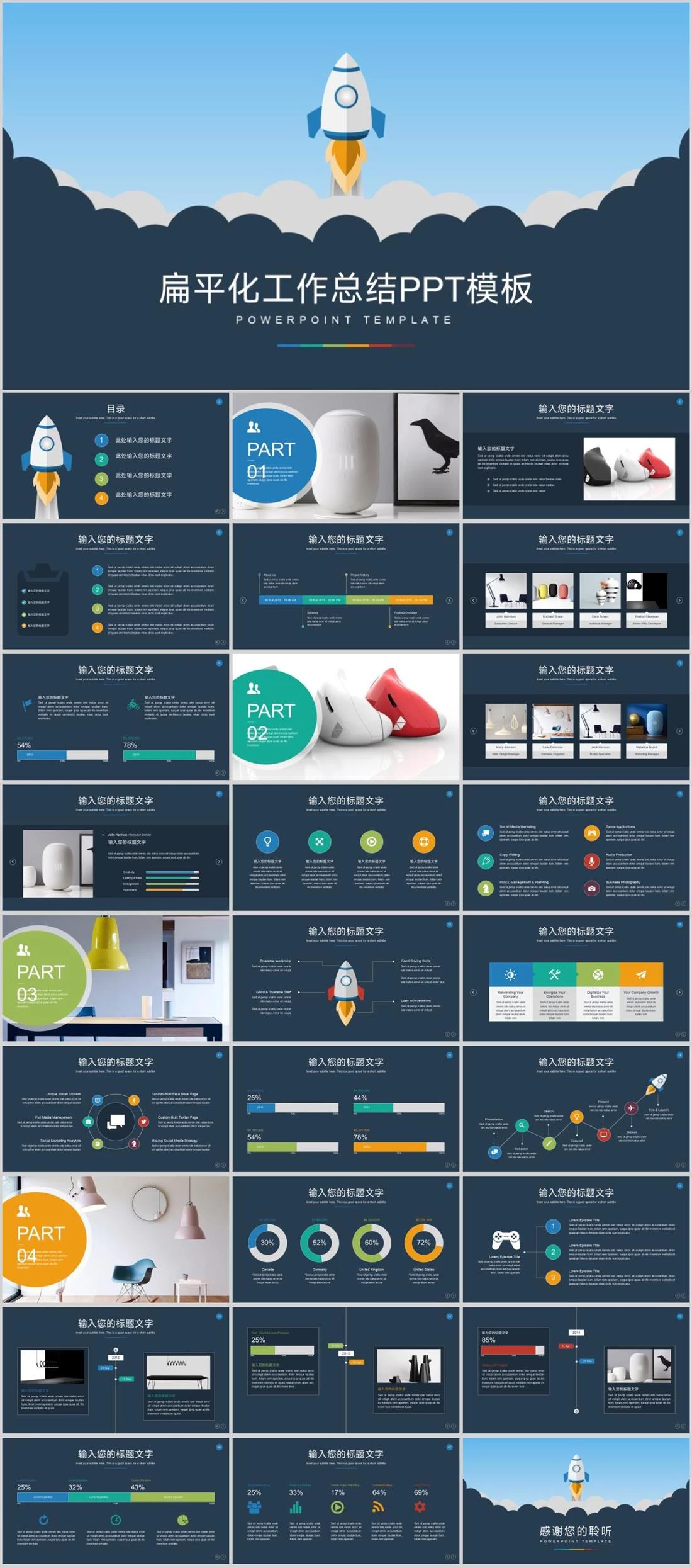 扁平化工作总结PPT模板POWERPOINT TEMPLATE27套卡通扁平风,模板,彩色扁平风,21,甜猫的储藏室,