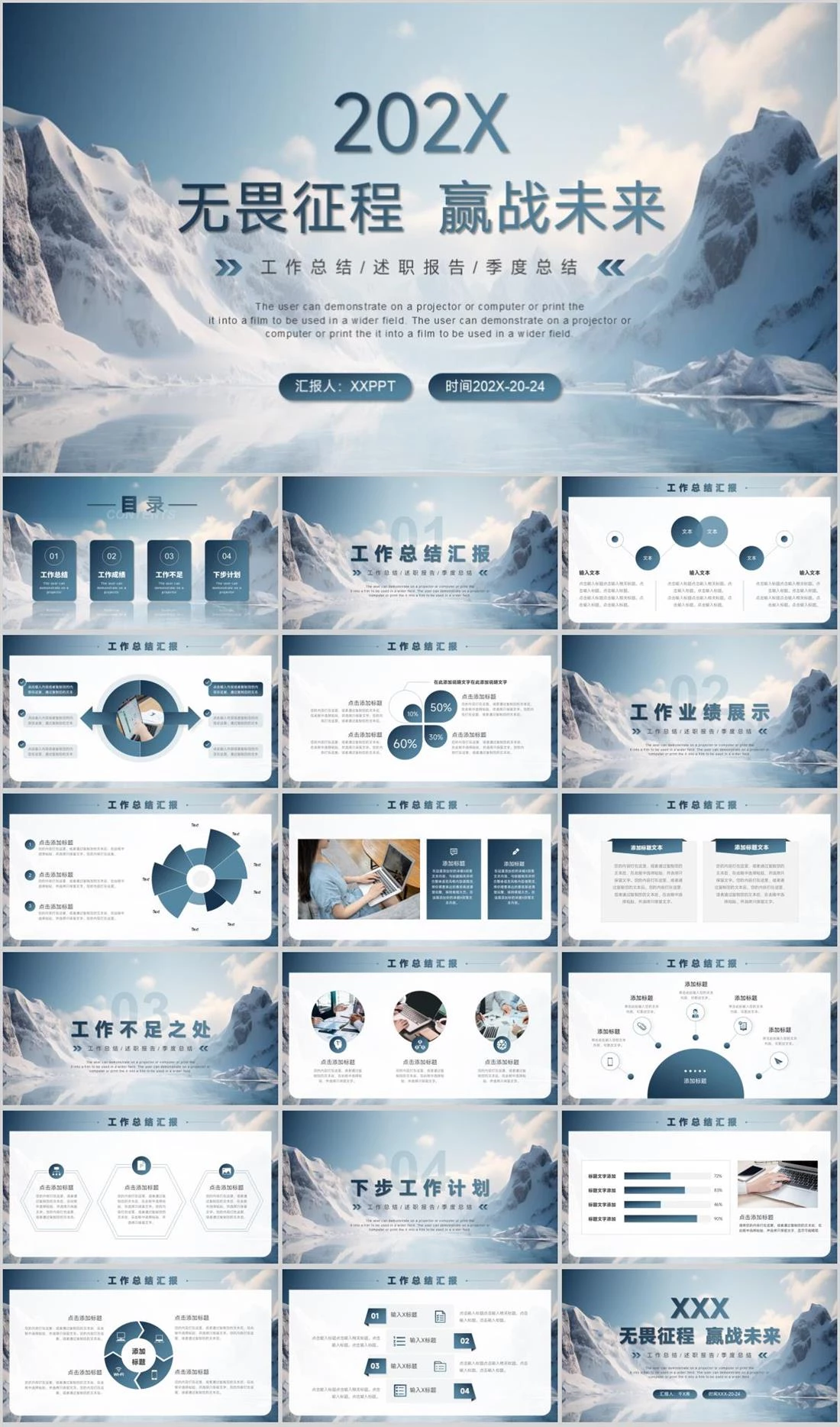202X无畏征程 赢战未来工作总结/述职报告/季度总结The user can demonstrate on a projector or computer or print the it into a film to be used in a wider field. The user can d新年工作计划,7,