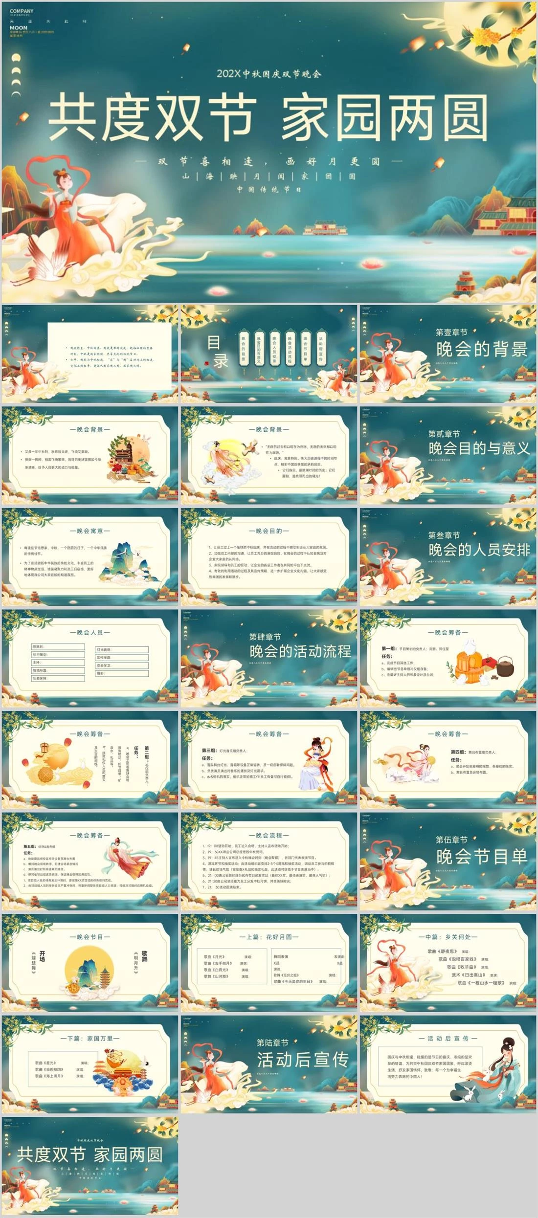 202X中秋国庆双节晚会共度双节 家园两圆—双节喜相逢,画好月更圆—山|海|映|月|阖|家|团|圆中国传统节日中秋国庆,1458,