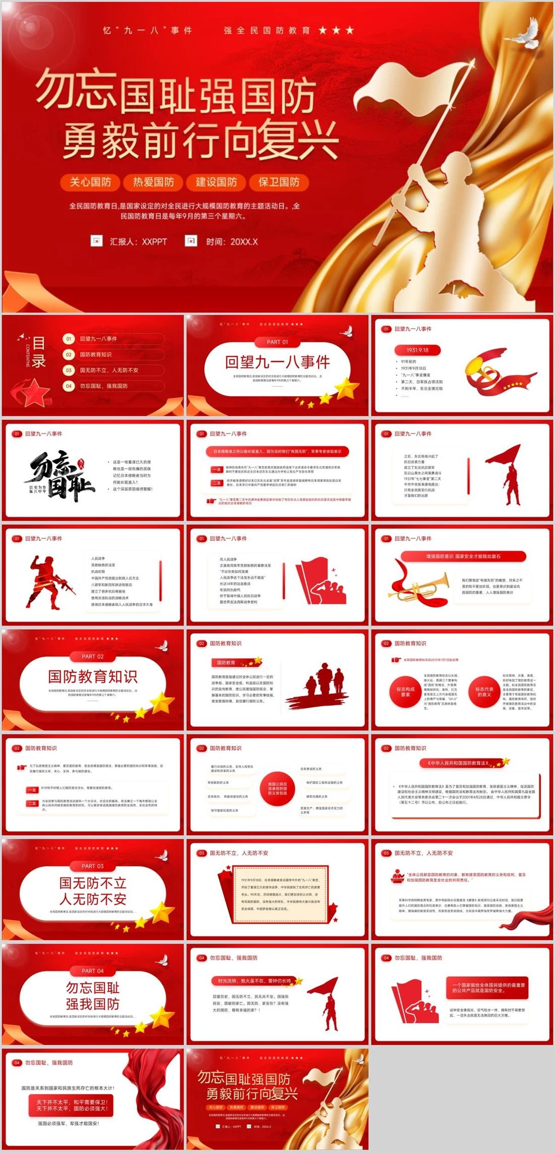 关心国防热爱国防建设国防保卫国防全民国防教育日,是国家设定的对全民进行大规模国防教育的主题活动日。,全民国防教育日是每年9月的第三个星期六。勿忘国耻强国防复兴勇毅前行向忆“九一八”事件 强全民国防教育汇报人:XXPPT时间:20XX.X九一八事变,1621,