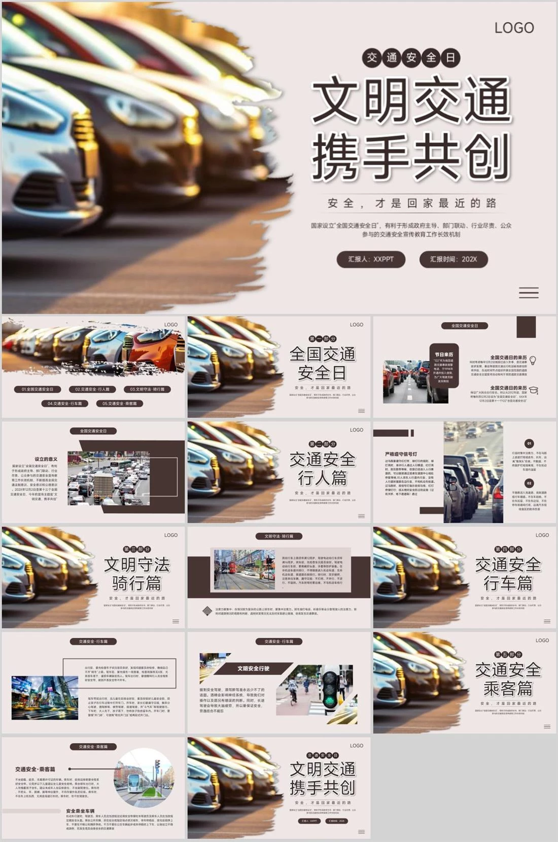文明交通携手共创文明交通携手共创安全,才是回家最近的路交通安全日LOGO国家设立“全国交通安全日”,有利于形成政府主导、部门联动、行业尽责、公众参与的交通安全宣传教育工作长效机制汇报人:XXPPT汇报时间:202X交通安全,1914,