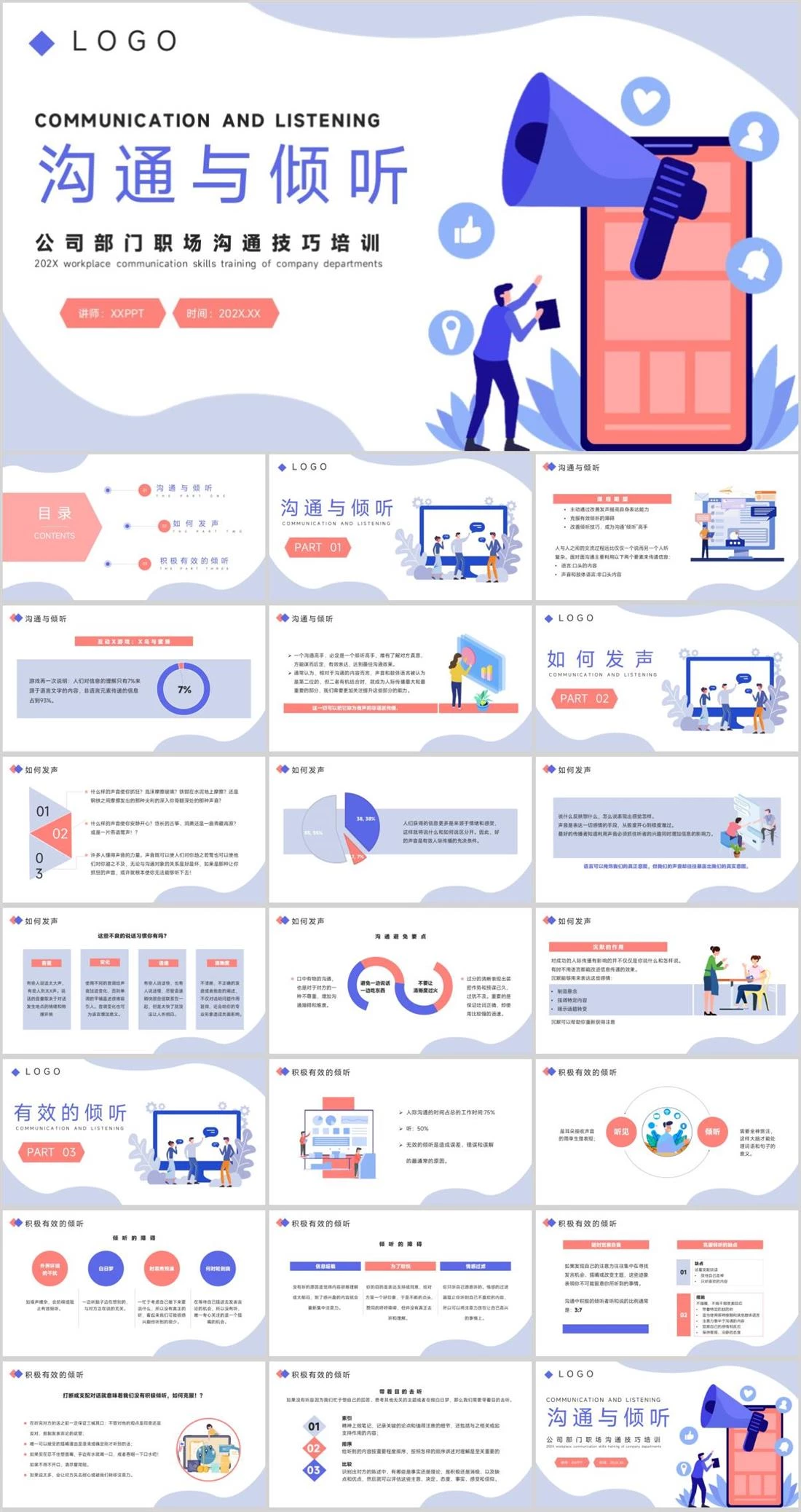 沟通与倾听COMMUNICATION AND LISTENING讲师:XXPPT 时间:202X.XX公司部门职场沟通技巧培训202X workplace communication skills training of company departmentsL O G O企业培训,