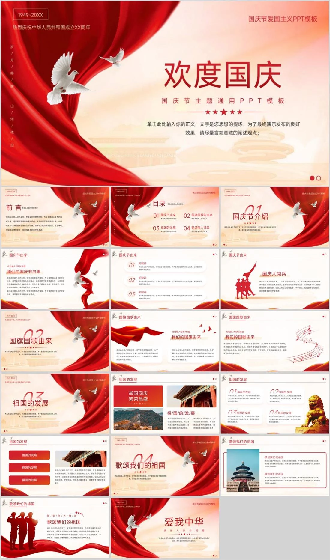 1949~20XX热烈庆祝中华人民共和国成立XX周年欢度国庆国庆节主题通用PPT模板单击此处输入你的正文,文字是您思想的提炼,为了最终演示发布的良好效果,请尽量言简意赅的阐述观点;国庆节爱国主义PPT模板岁/月/峥/嵘 山/河/依/旧国庆节,2721,