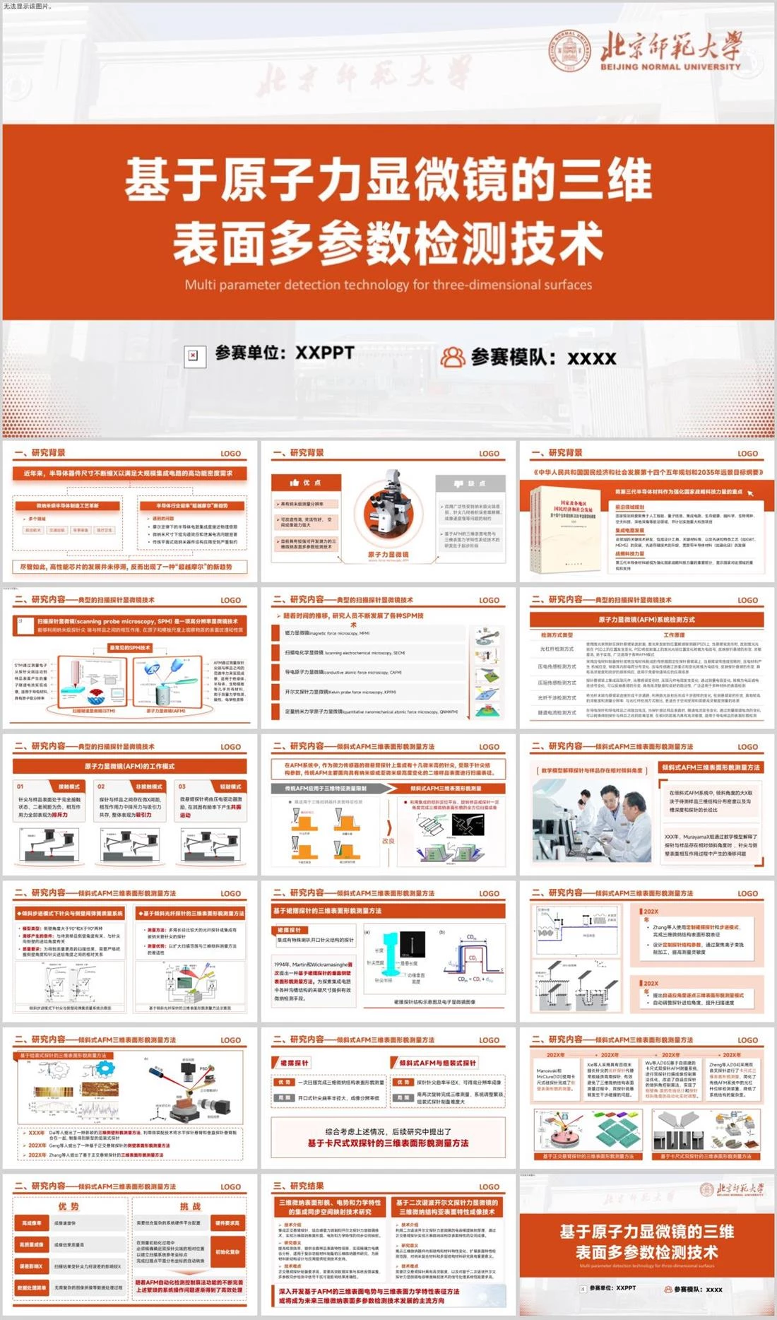 基于原子力显微镜的三维表面多参数检测技术参赛单位:XXPPT参赛模队:xxxxMulti parameter detection technology for three-dimensional surfaces学术汇报,2103,