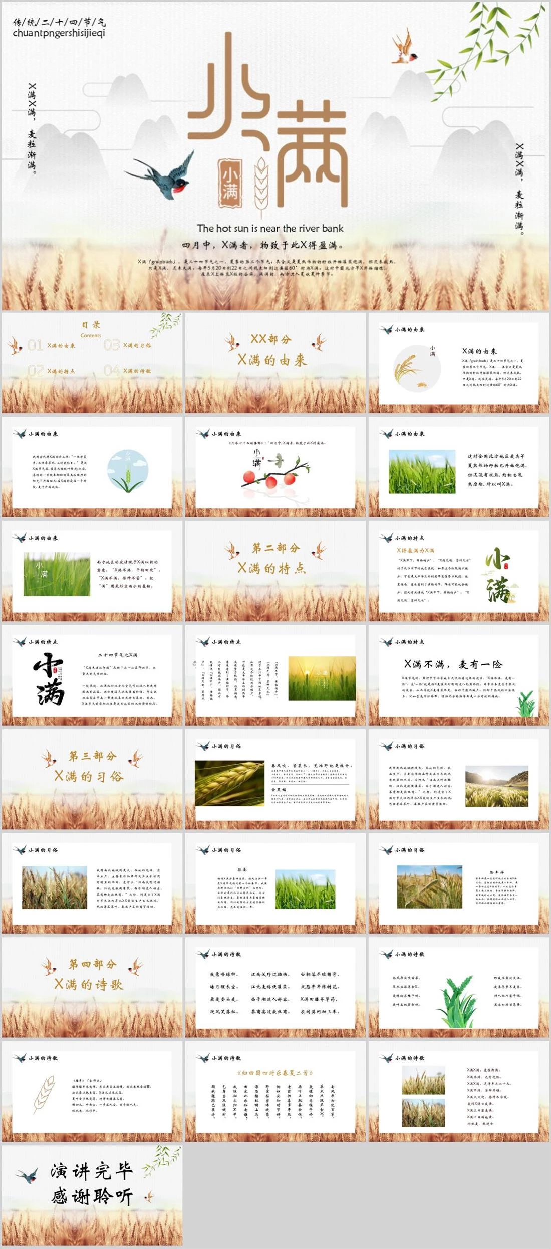 传/统/二/十/四/节/气chuantpngershisijieqiThe hot sun is near the river bank四月中,X满者,物致于此X得盈满。X满(grainbuds),是二十四节气之一,夏季的第二个节气。其含义是夏熟作物的籽粒开始灌浆饱满,但还未成熟,只是X满,还未大小满节气,1129,