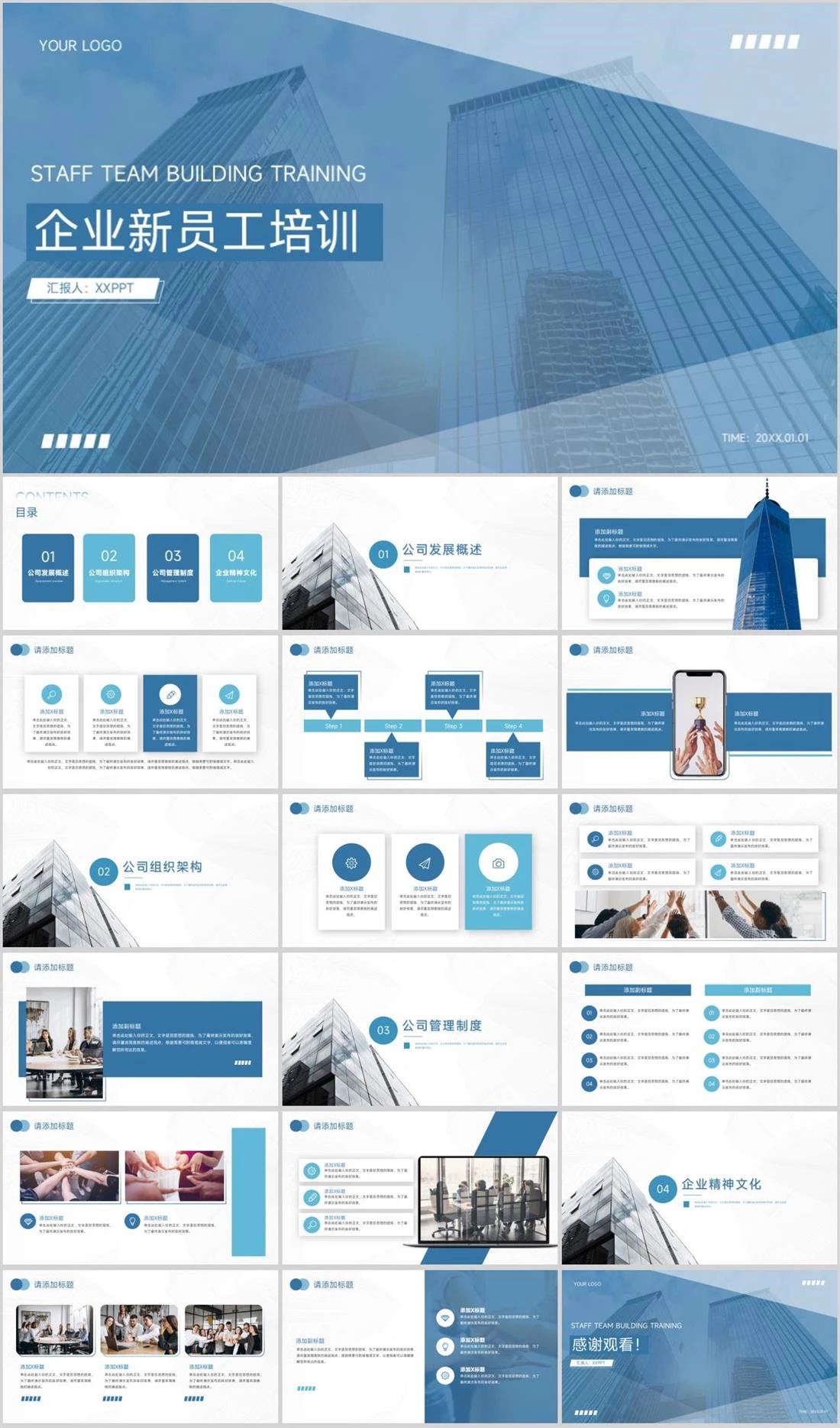 汇报人:XXPPT STAFF TEAM BUILDING TRAININGTIME:20XX.01.01YOUR LOGO企业新员工培训企业培训,383,