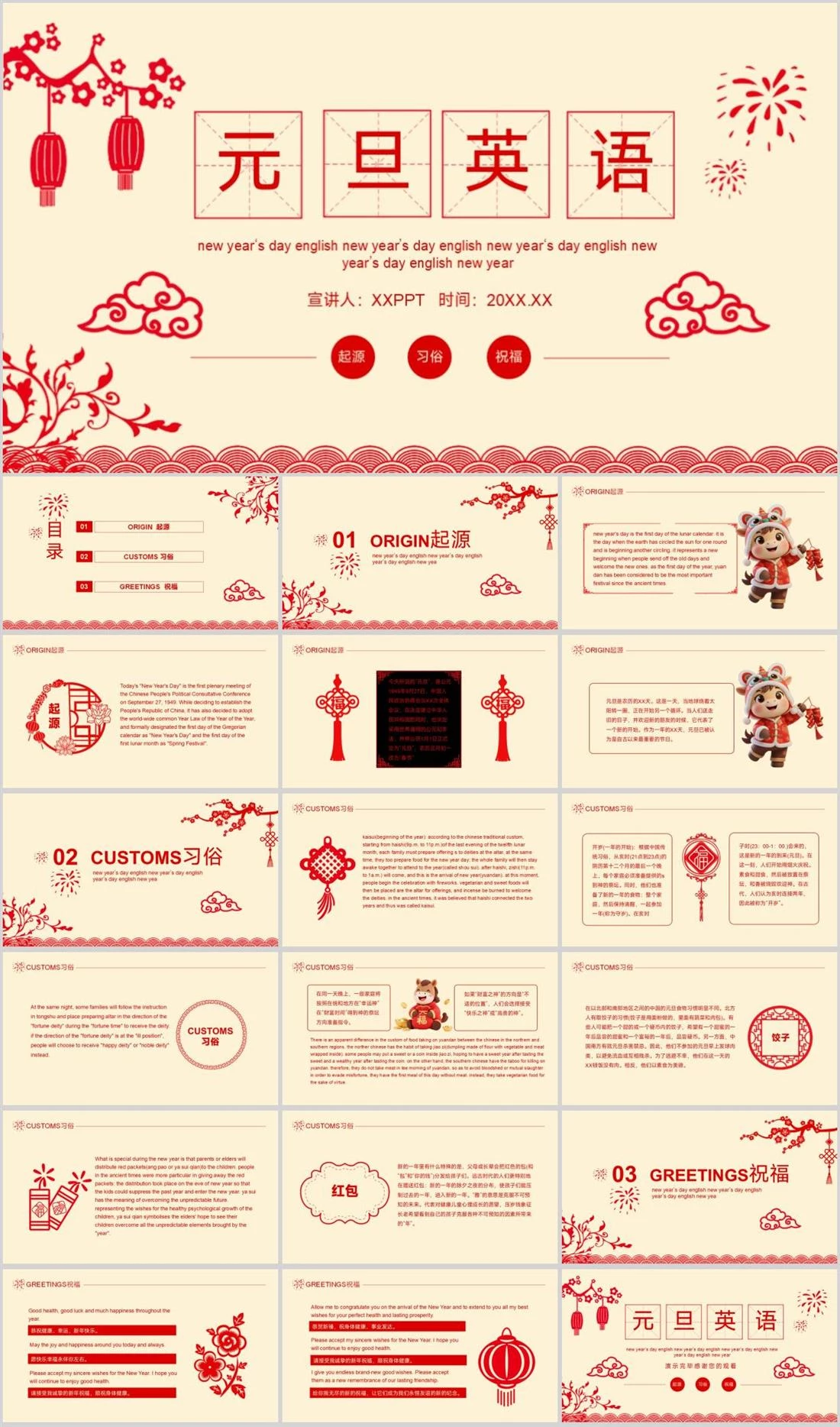 元旦英语new year‘s day english new year’s day english new year‘s day english new year’s day english new year宣讲人:XXPPT 时间:20XX.XX起源习俗祝福元旦主题,2663,