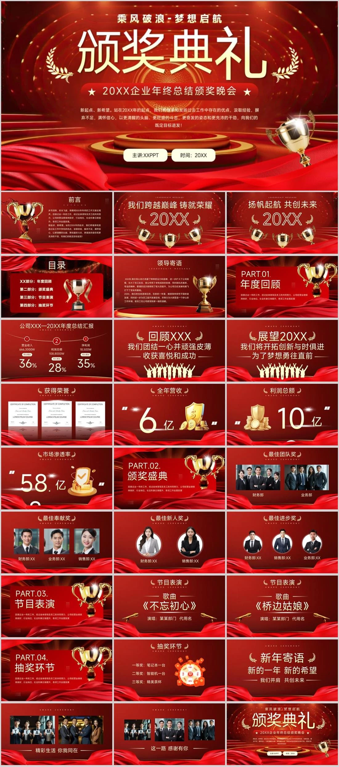 新起点、新希望。站在20XX年的起点,我们将继承和发扬过去工作中存在的优点,汲取经验,摒弃不足,满怀信心,以更清醒的头脑、更旺盛的斗志、更奋发的姿态和更充沛的干劲,向我们的既定目标进发!20XX企业年终总结颁奖晚会乘风破浪-梦想启航颁奖典礼主讲:XXPPT时间:20XX公司年会,2446,